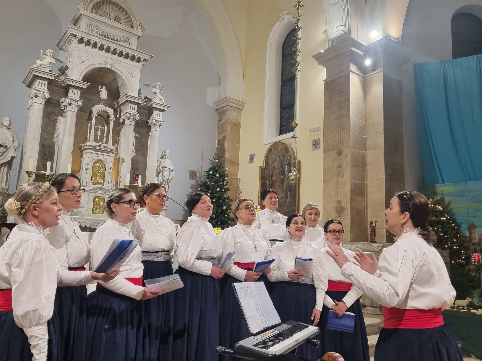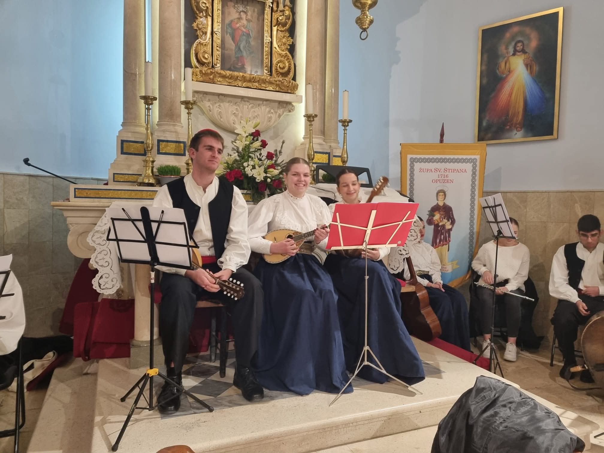 Opuzenski folkloraši animirali su svetu misu, tijekom koje su izveli nekoliko prigodnih božićnih napjeva, a po završetku misnog slavlja mnogobrojne vjernike razveselili su božićnim pjesmama iz različitih krajeva Lijepe Naše.