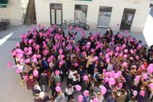 Držeći u rukama ružičaste balone, simbol borbe, zajedništva i podrške ženama oboljelima od raka dojke, svi su se zajedno formirali u oblik srca, šaljući snažnu poruku ljubavi i solidarnosti.
