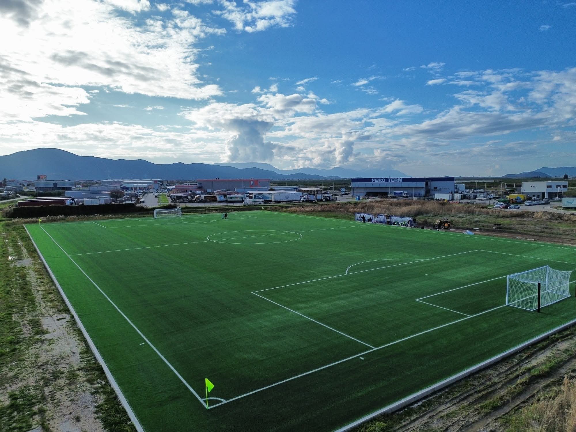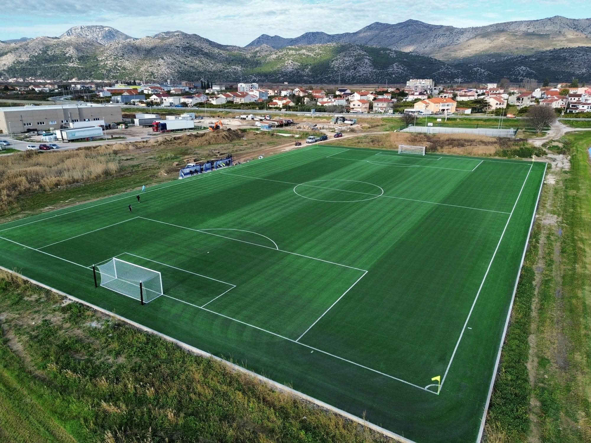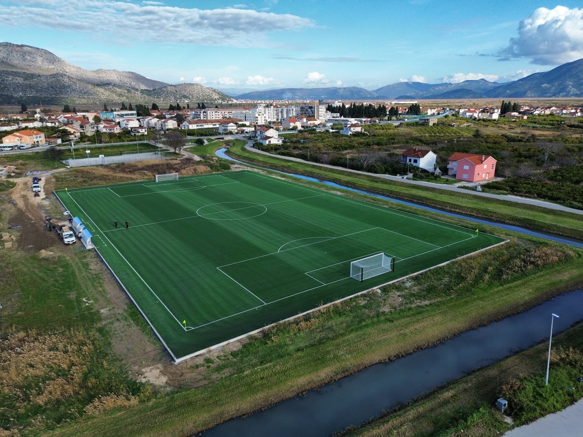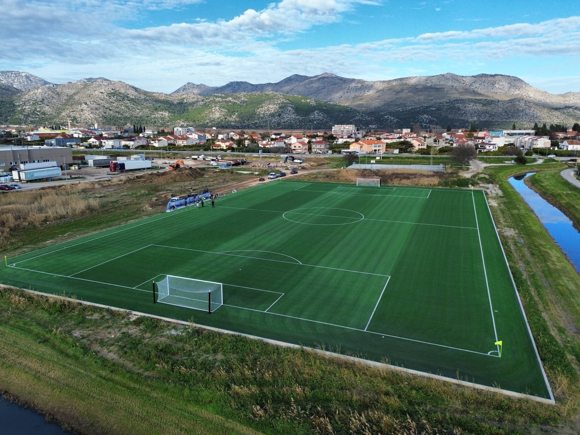 Uz to, postavljeni su golovi, kućice za igrače i delegate te ostala prateća oprema, čime je igralište u potpunosti opremljeno za korištenje. Prethodno su izvedeni radovi umetanja sitnog pijeska u raščetkanu umjetnu travu, ukupne količine 180 tona, kao i postavljanje spojnih traka koje označavaju linije igrališta.