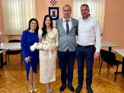 Gradonačelnik Opuzena Ivan Mataga i njegova Magdalena sklopili su građanski brak na svečanosti održanoj pred matičarem, uz prisutnost kumova Ivane i Tonija. Sretnu ...