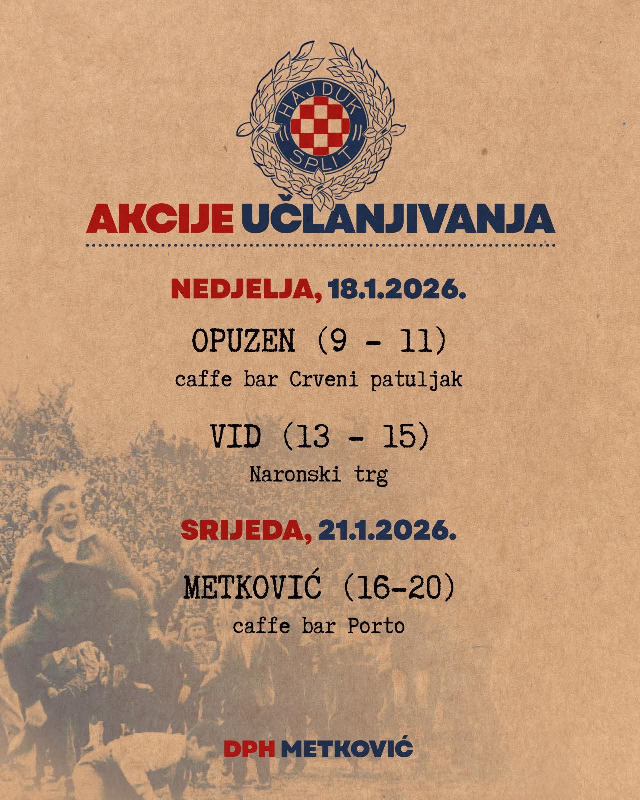 DPH Metković organizira akcije učlanjivanja u Hajduk u Dolini Neretve, koje će se održati ovog vikenda u Opuzenu i Vidu, dok je sljedeći termin predviđen za Metković.