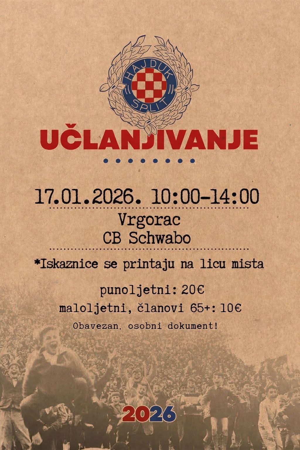 Riječ je o aktivnosti kojom se, osim učlanjivanja u Hajduk za 2026. godinu, prikupljaju sredstva za otvaranje službenog prostora DPH Vrgorac.
