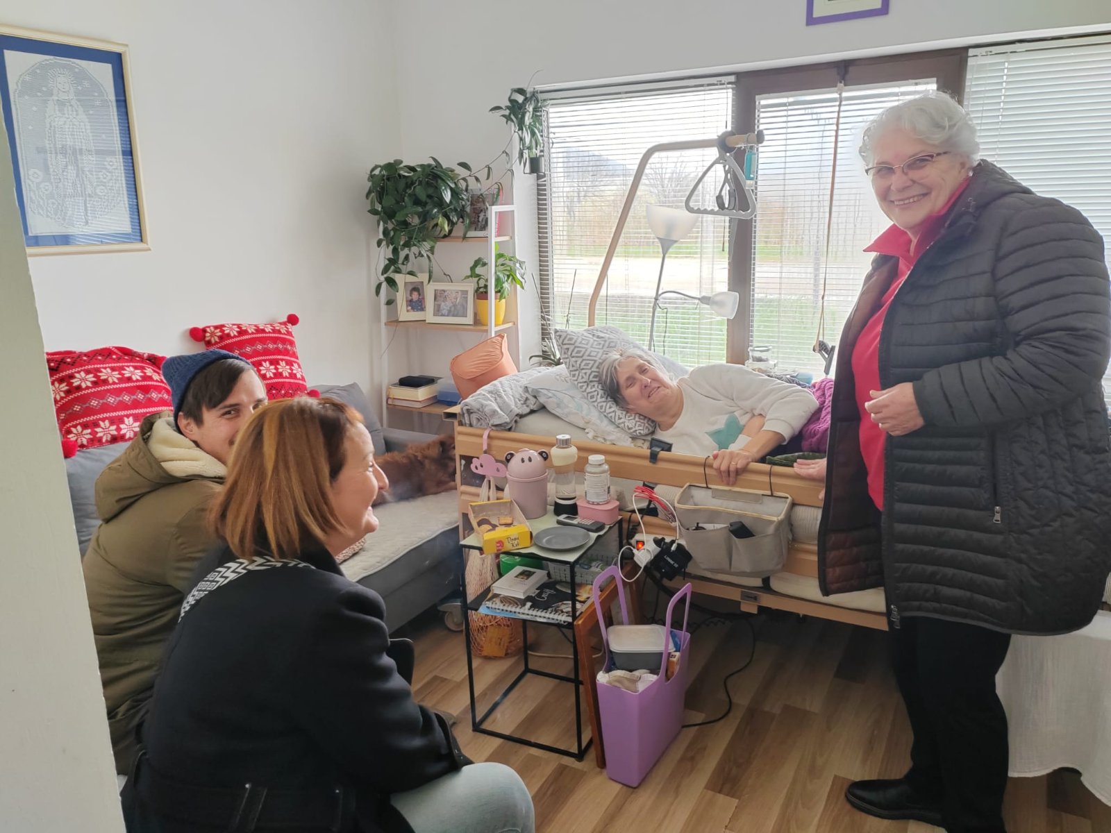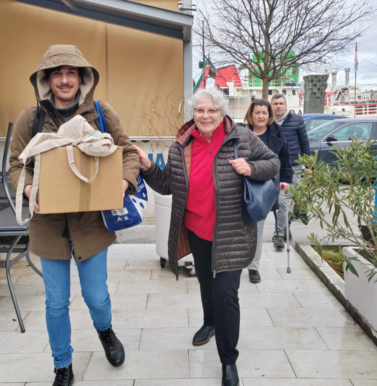 Sljedeći posjet bio je 17-godišnjem Dinu, novom članu Udruge. Kratko je zahvalio na regalima i požurio na trening. Iako susret nije dugo potrajao, svima je bilo važno vidjeti da je mlad, aktivan i uključen u svakodnevni život. Obilazak je nastavljen posjetom gospođi Radi, također novijoj članici Udruge, iako s bolešću živi već dulje vrijeme.