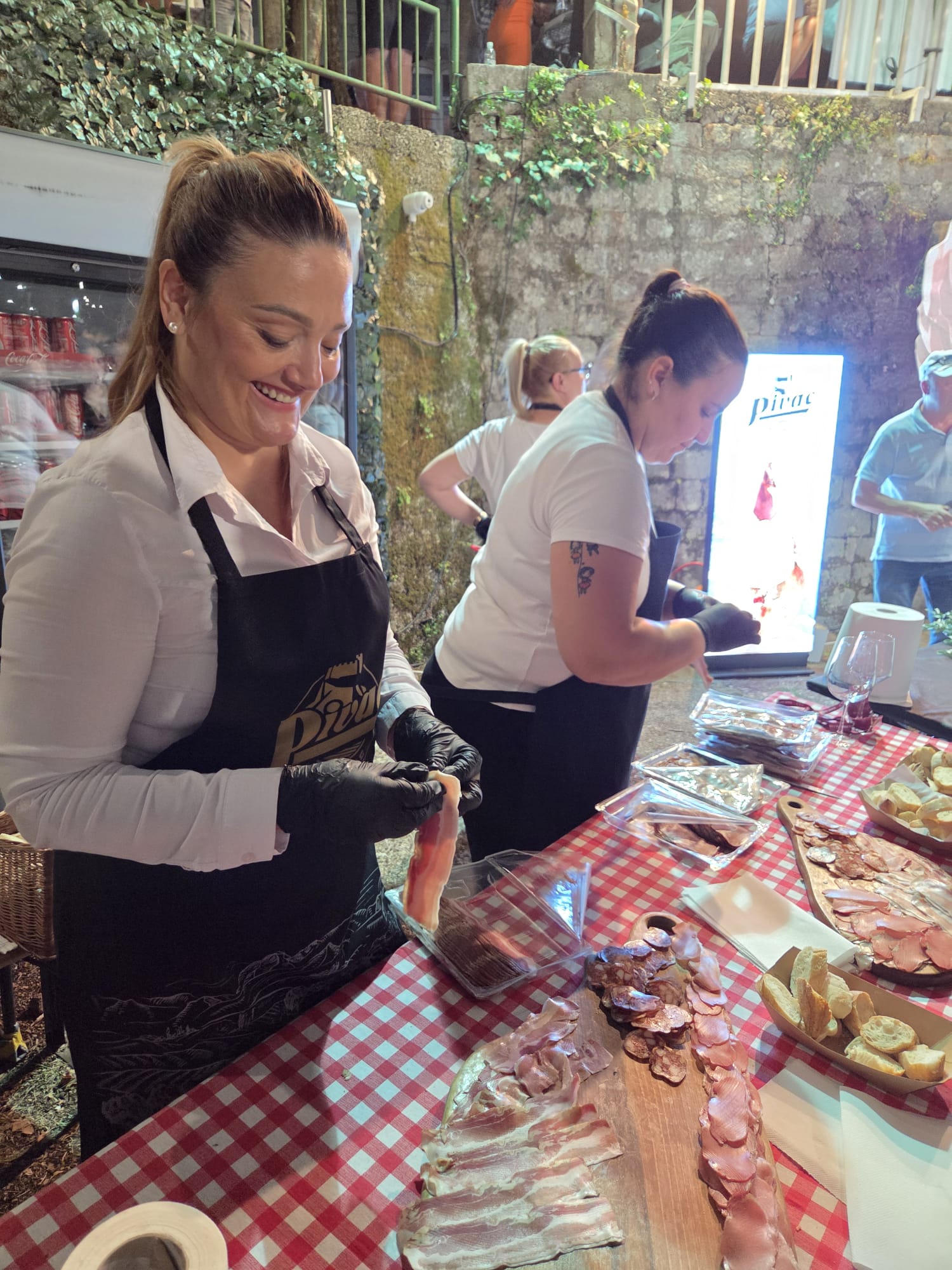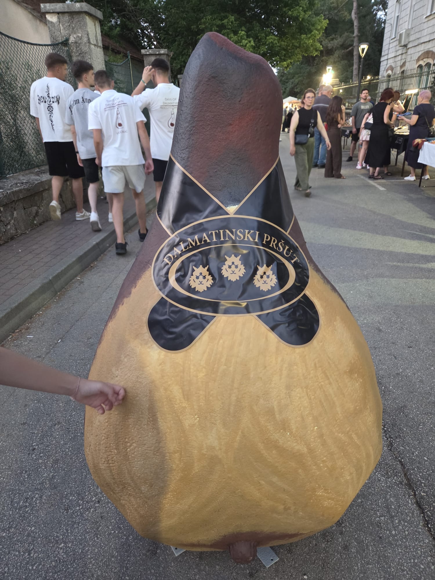 U središtu večeri bio je – naravno – dalmatinski pršut, simbol ovog kraja, poznat po specifičnoj aromi koju duguje kombinaciji mediteranskog bilja, zabiokovske bure i umijeća sušenja koje se prenosi generacijama. Osim pršuta, posjetitelji su mogli kušati i vrhunske domaće pancete, kobasice, sireve i tradicionalna jela vrgorskog podneblja.