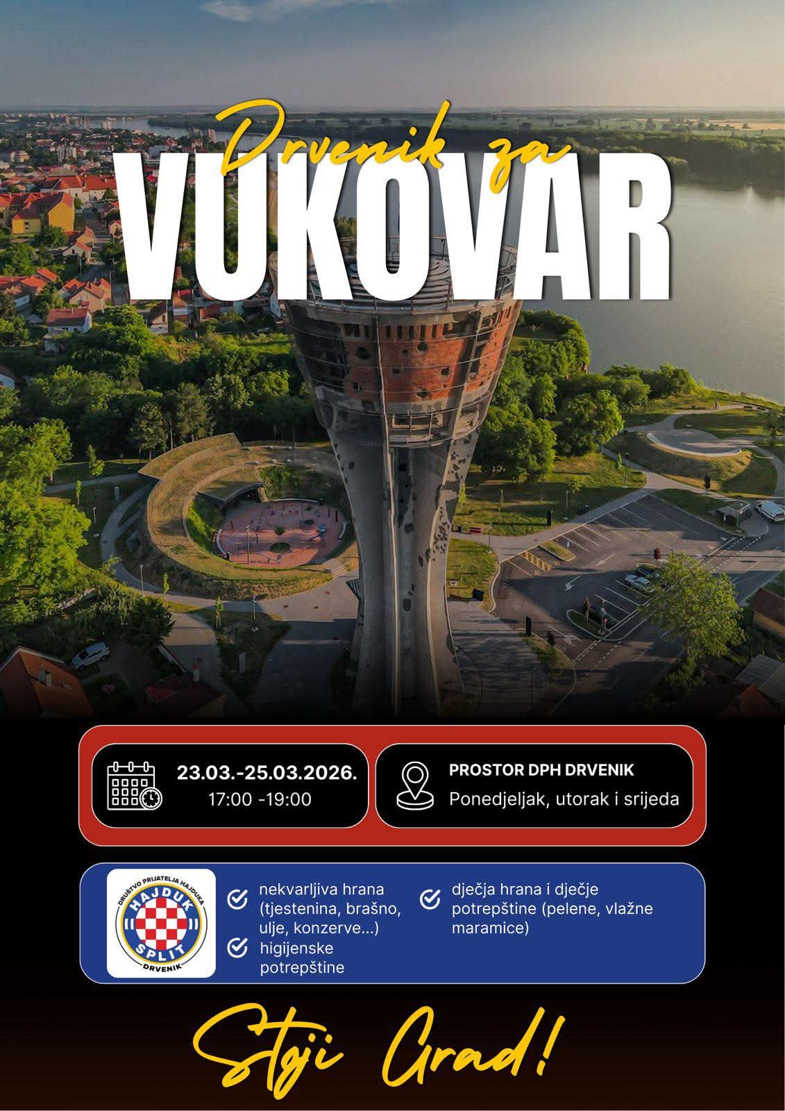 Akciju tradicionalno organiziraju Društva prijatelja Hajduka s Makarske rivijere, koja i ove godine prikupljaju pomoć za humanitarnu samoposlugu Duga. Riječ je o organizaciji koja svakodnevno skrbi za više od 600 socijalno ugroženih vukovarskih obitelji.