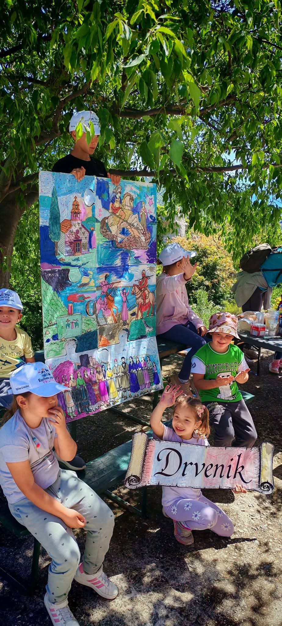 Program je započeo u 9:30 sati, a djeca su kroz niz osmišljenih aktivnosti imala priliku upoznati bogatu kulturno-povijesnu baštinu mjesta. Učili su o crkvi sv. Jure, stećku Kostanića greb, legendama o ljubavi i hrabrosti drveničkih žena te o povijesnom značaju utvrde Gradina, gdje je na kraju održan i kviz znanja kojim su provjerili usvojeno.