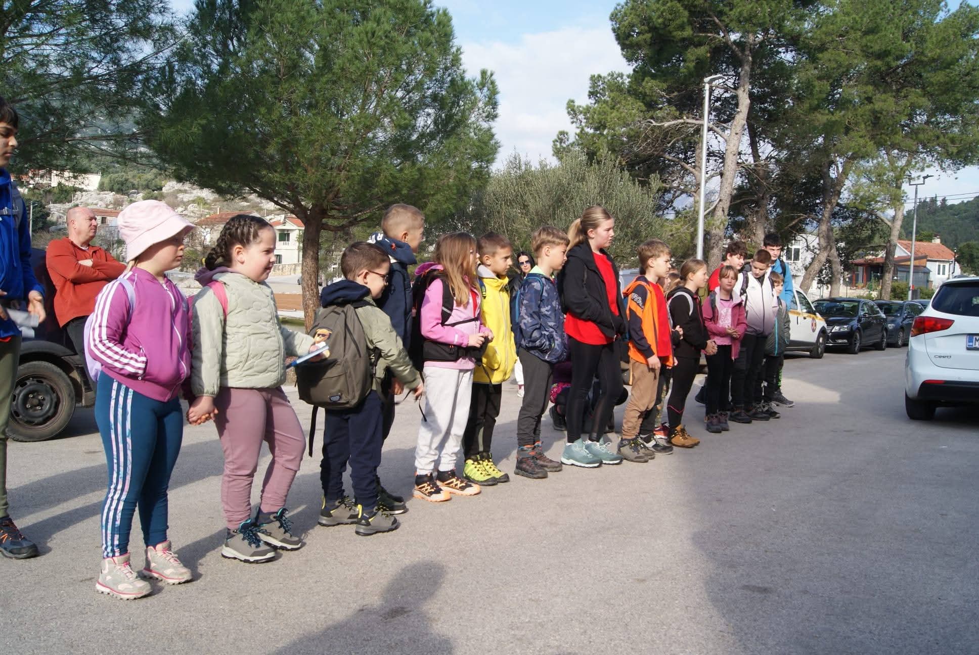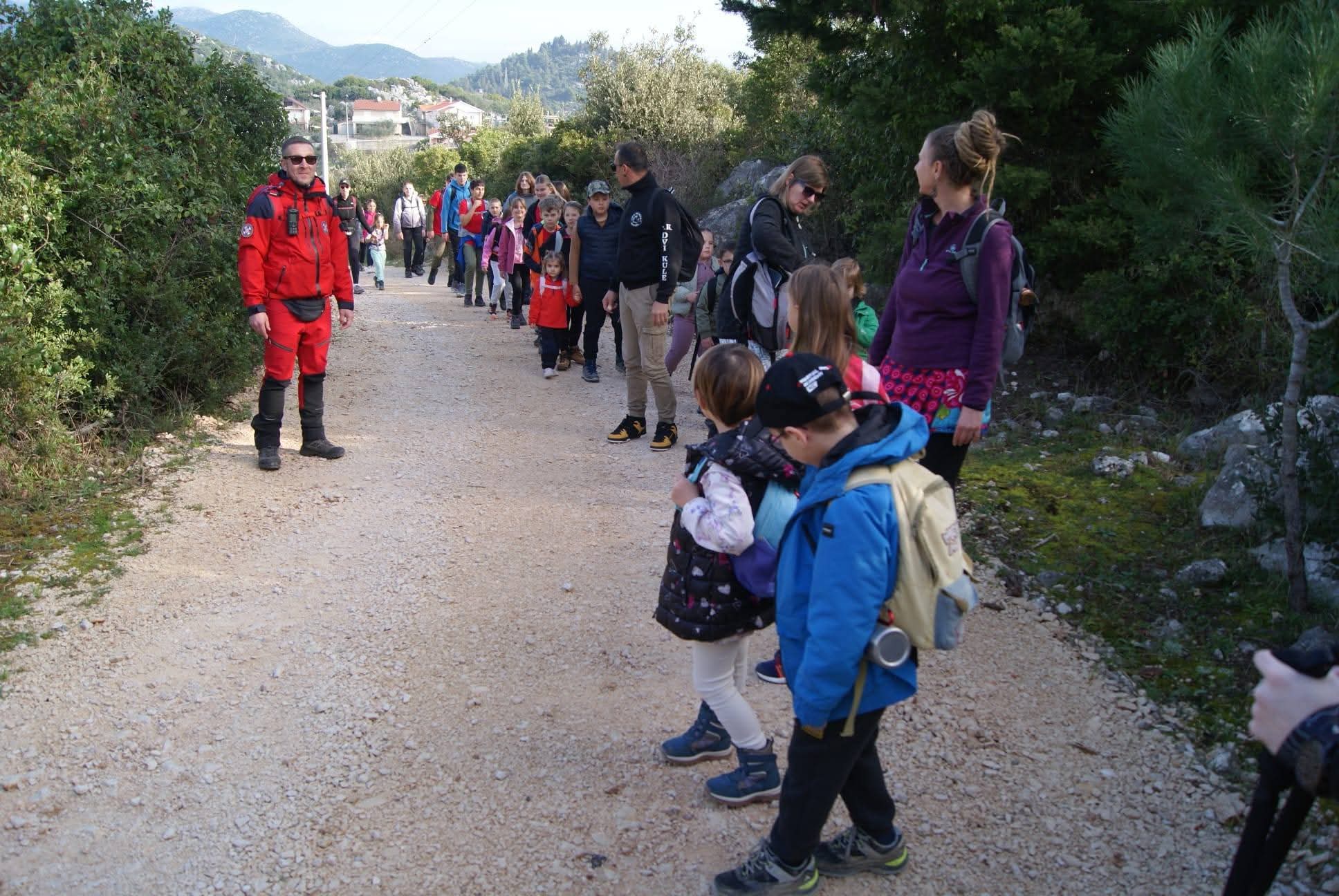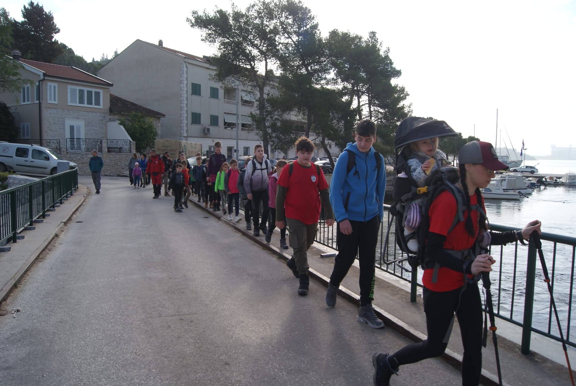 Ruta je započela makadamskim putem kroz borovu i čempresovu šumu, a potom nastavila kroz makiju sve do vrha. Djeca su putem učila prepoznavati planinarske markacije i informativne table, a vodstvo je pratilo dinamiku skupine koja je, unatoč dobnoj raznolikosti, pokazala zavidnu razinu discipline i suradnje. Uspon do vrha trajao je nešto više od dva sata.