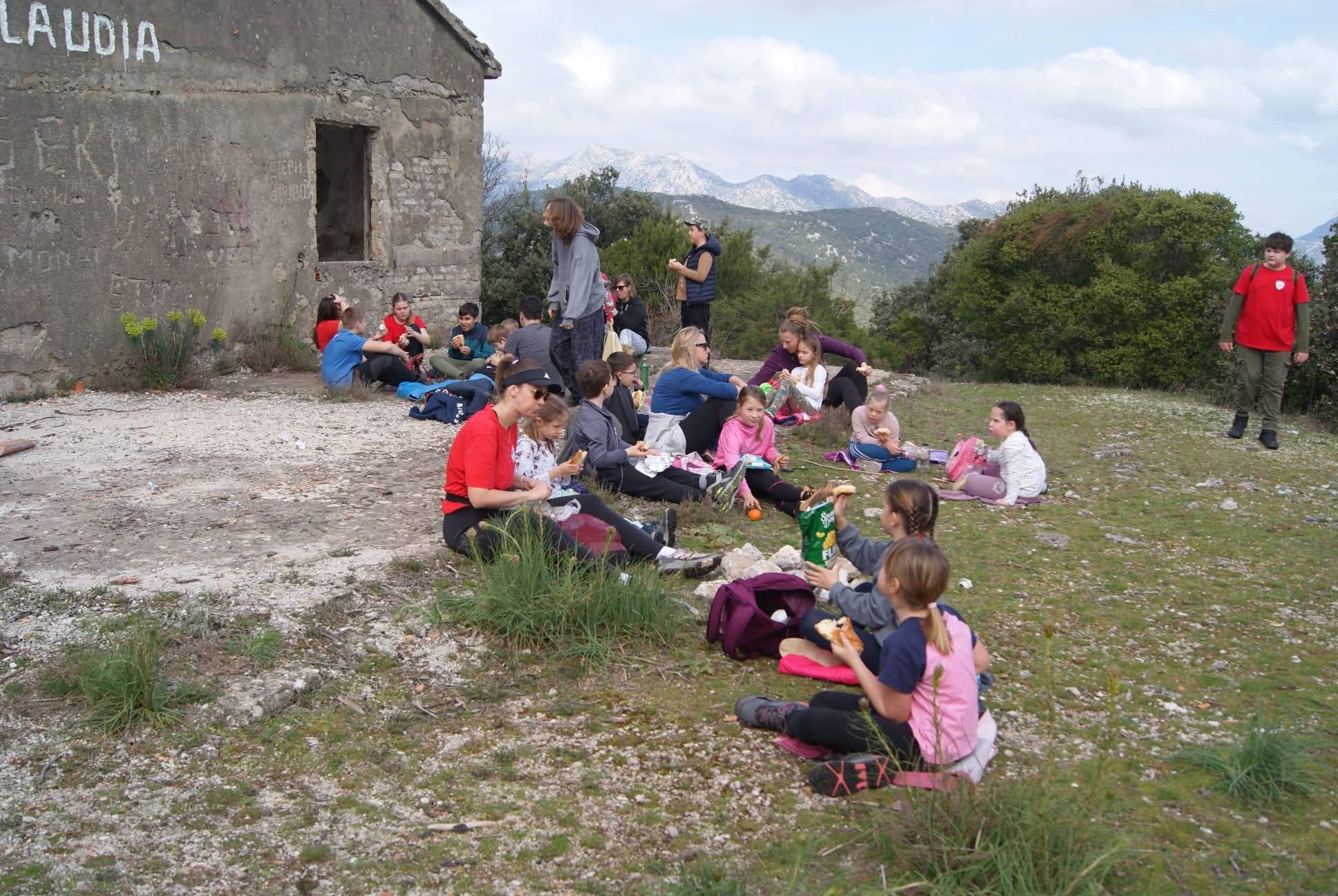 Na Višnjici sudionike su dočekali ostaci talijanskih položaja i ruševna kuća pokraj koje je organiziran odmor i okrjepa. Nakon predaha, uslijedio je izlazak na sam vrh s kojeg se pruža pogled na Ploče, dolinu i ušće Neretva, Pelješac, dok su se u daljini, kroz maglu, nazirali Grabovica, Sveti Ilija i Gradac. Djeca su na najvišoj točki učila o orijentaciji i prepoznavanju prostora u kojem se nalaze, nakon čega je uslijedilo zajedničko fotografiranje.