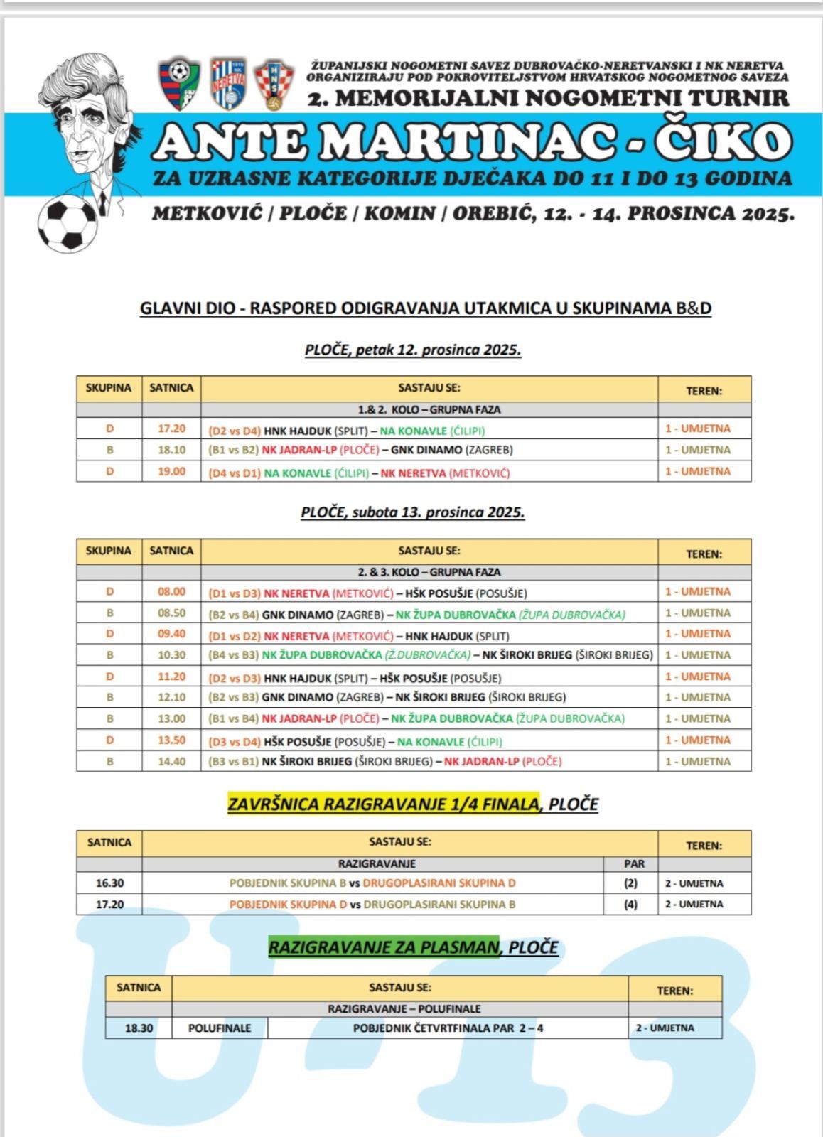 U Pločama se danas igra dio utakmica u sklopu 2. Memorijalnog nogometnog turnira “Ante – Čiko Martinac”. Na stadionu Jadranovo odigravaju se susreti grupne faze turnira za mlađe uzraste, a domaćinstvo utakmica još jednom potvrđuje važnu ulogu Ploča u organizaciji ovog sportskog događaja.