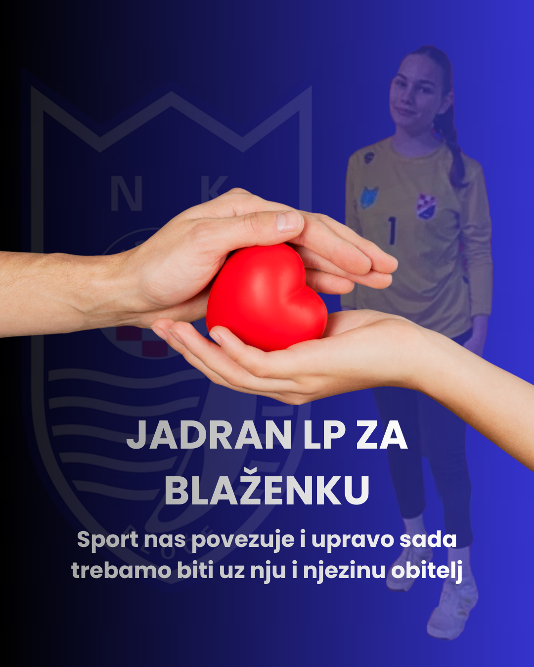 Nogometni klub Jadran Luka Ploče pridružio se humanitarnoj akciji pomoći Blaženki Ostojić, mladoj rukometašici Dalmatinke koja vodi tešku životnu bitku. Iz kluba su poručili kako će sav prihod od prodaje ulaznica na subotnjoj utakmici biti doniran za njezino liječenje.