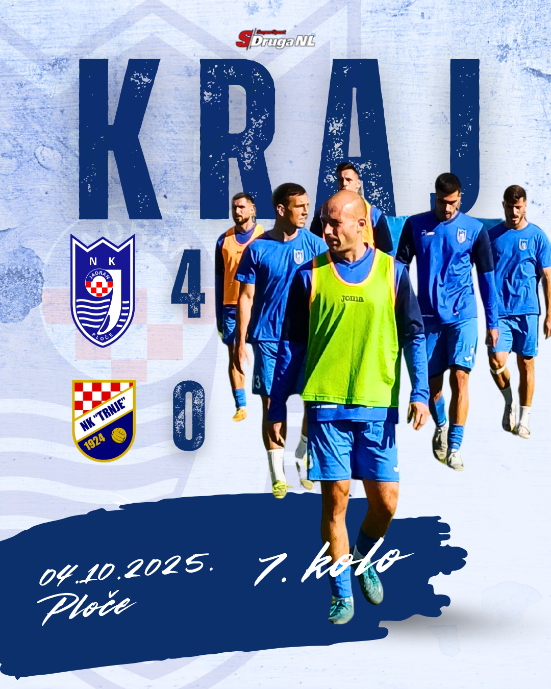 Rutinski. Bravo momci! – kratko i jasno objavili su iz Jadrana Luka Ploče nakon uvjerljive 4:0 pobjede protiv Trnja na Jadranovu. Bila je to još jedna impresivna izvedba „plavih“, koji su uz sigurnu igru i četiri različita strijelca pokazali da se domaći travnjak ponovno pretvara u – neosvojivu tvrđavu.