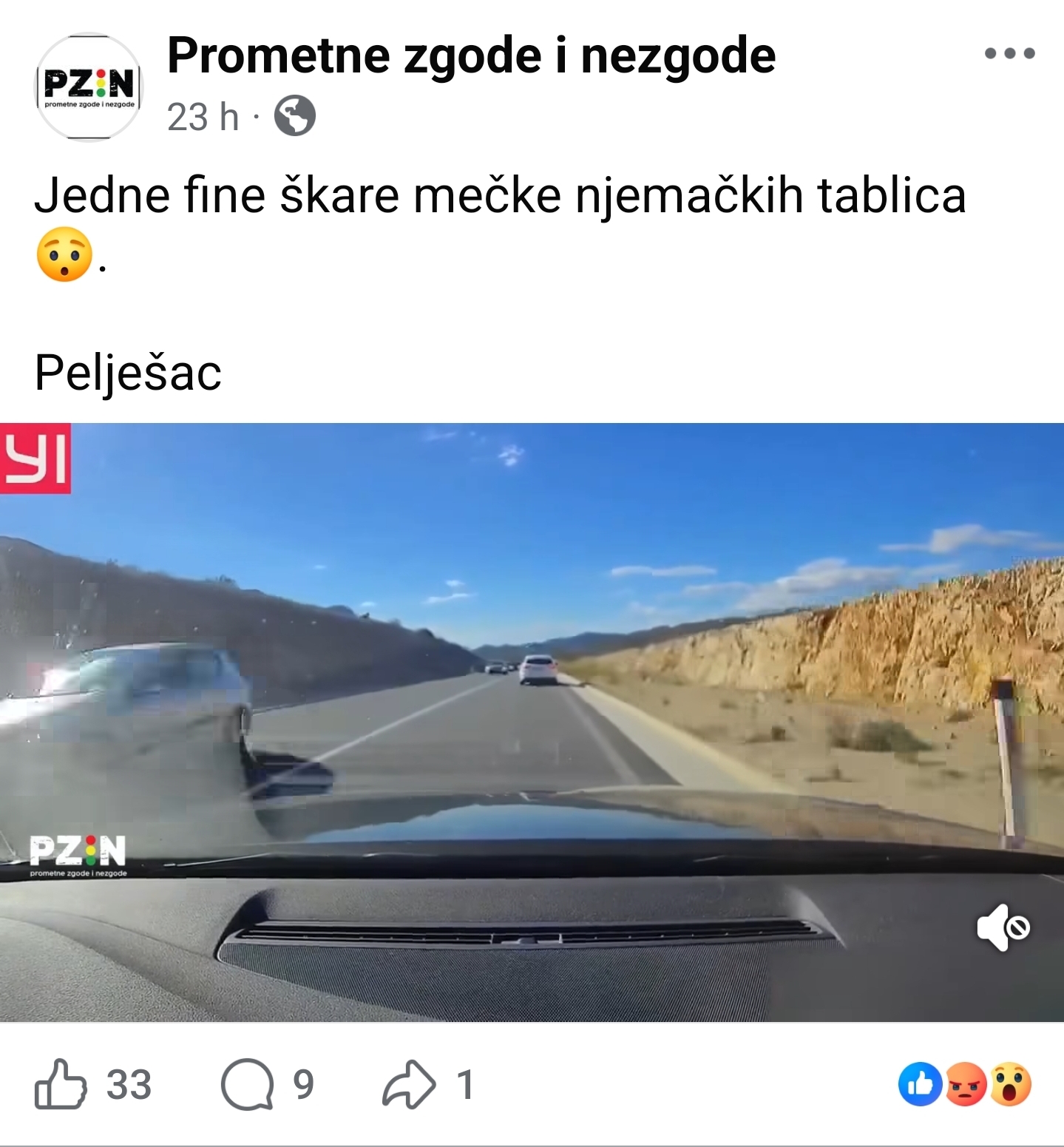 Videosnimka je objavljena na Facebook stranici “Prometne zgode i nezgode”.