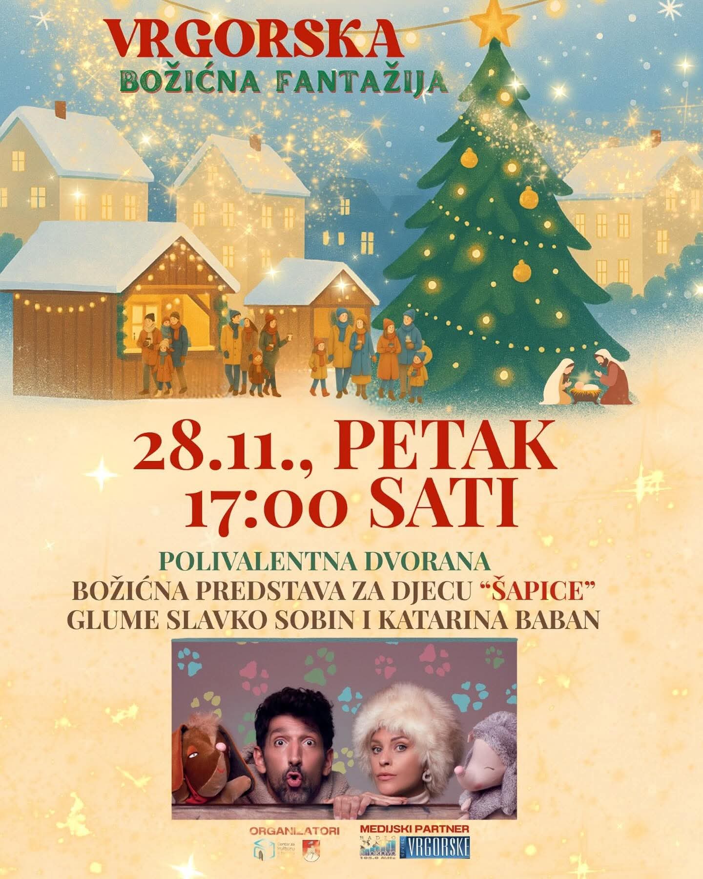 U petak, 28. studenoga, u 17 sati najmlađu publiku u Vrgorcu očekuje popularna predstava “Šapice”, nastala prema istoimenoj knjizi Slavka Sobina. Riječ je o toploj, edukativnoj priči o prijateljstvu, toleranciji i prihvaćanju različitosti, koja je osvojila srca tisuća djece i roditelja diljem Hrvatske.