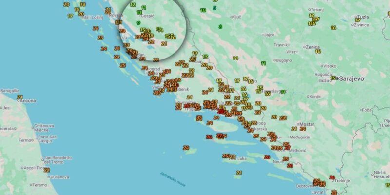 U Dubrovniku temperatura je dosegla 21,9 °C, dok su Knin (21,4 °C) i Lastovo (21,3 °C) također imali ugodan rujanski dan. Zemunik kraj Zadra zabilježio je 21,2 °C.
