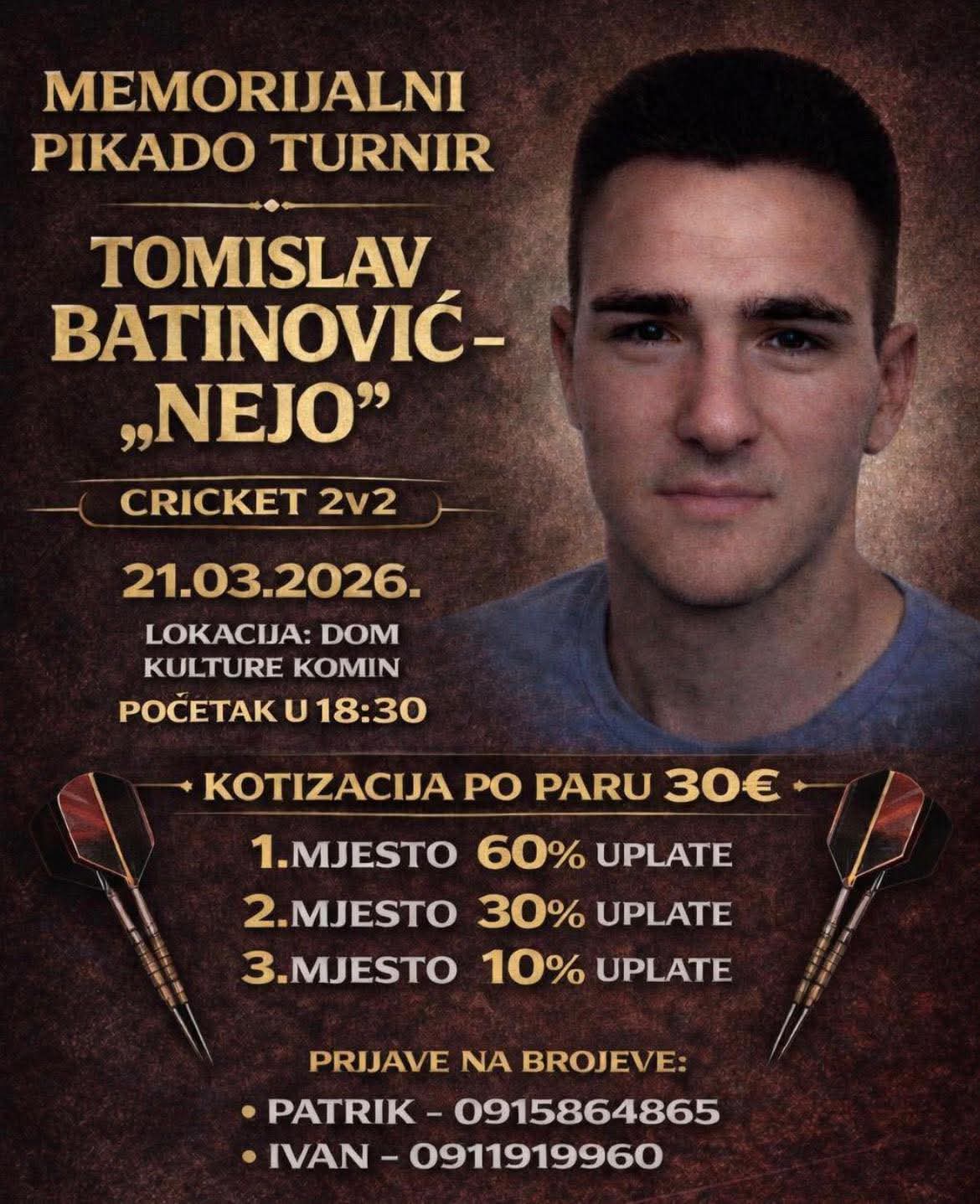 Nejo je bio dio klupske obitelji, suigrač i prijatelj kojeg su svi pamtili po vedrom duhu, šali i prepoznatljivoj rečenici koju je izgovarao prije svakog bacanja strelice. Turnir neće biti samo sportsko natjecanje, već večer ispunjena uspomenama, druženjem i pričama koje, kako poručuju iz kluba, nastavljaju živjeti kroz svako novo okupljanje.