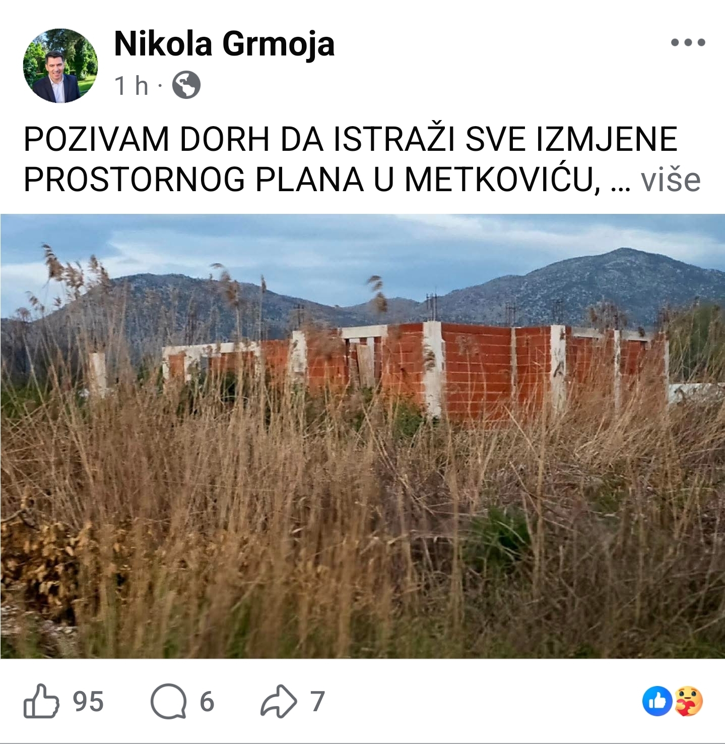 Grmoja je na to odgovorio oštro, odbacujući sve optužbe i pozivajući DORH na detaljnu provjeru svih izmjena prostornog plana u Metkoviću.