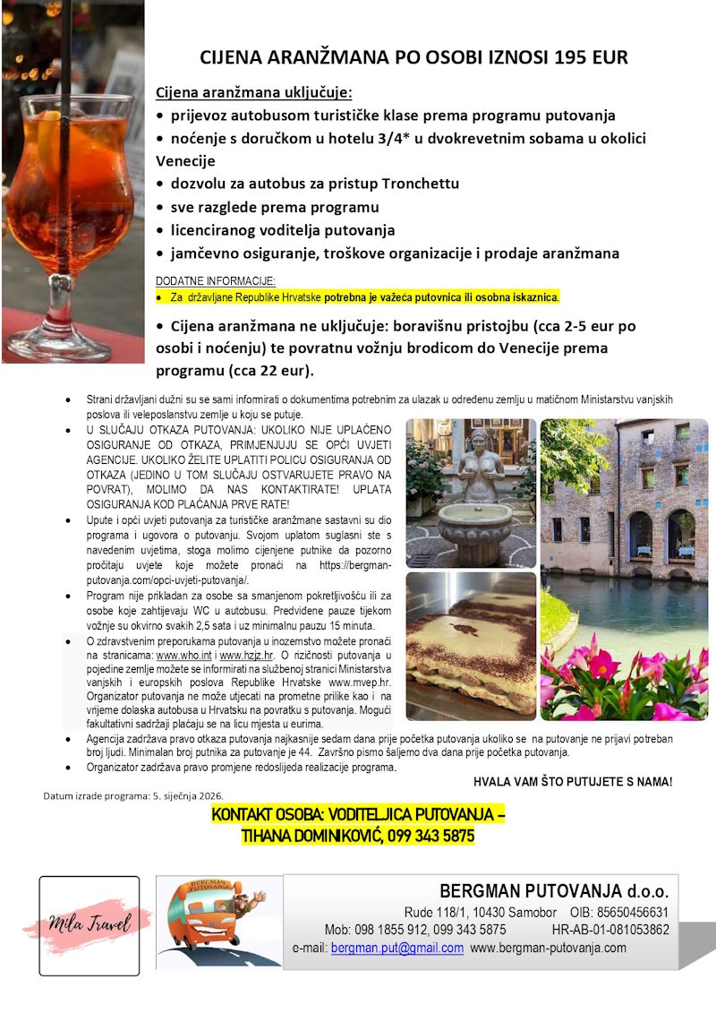 Cijena aranžmana: 195 € po osobi