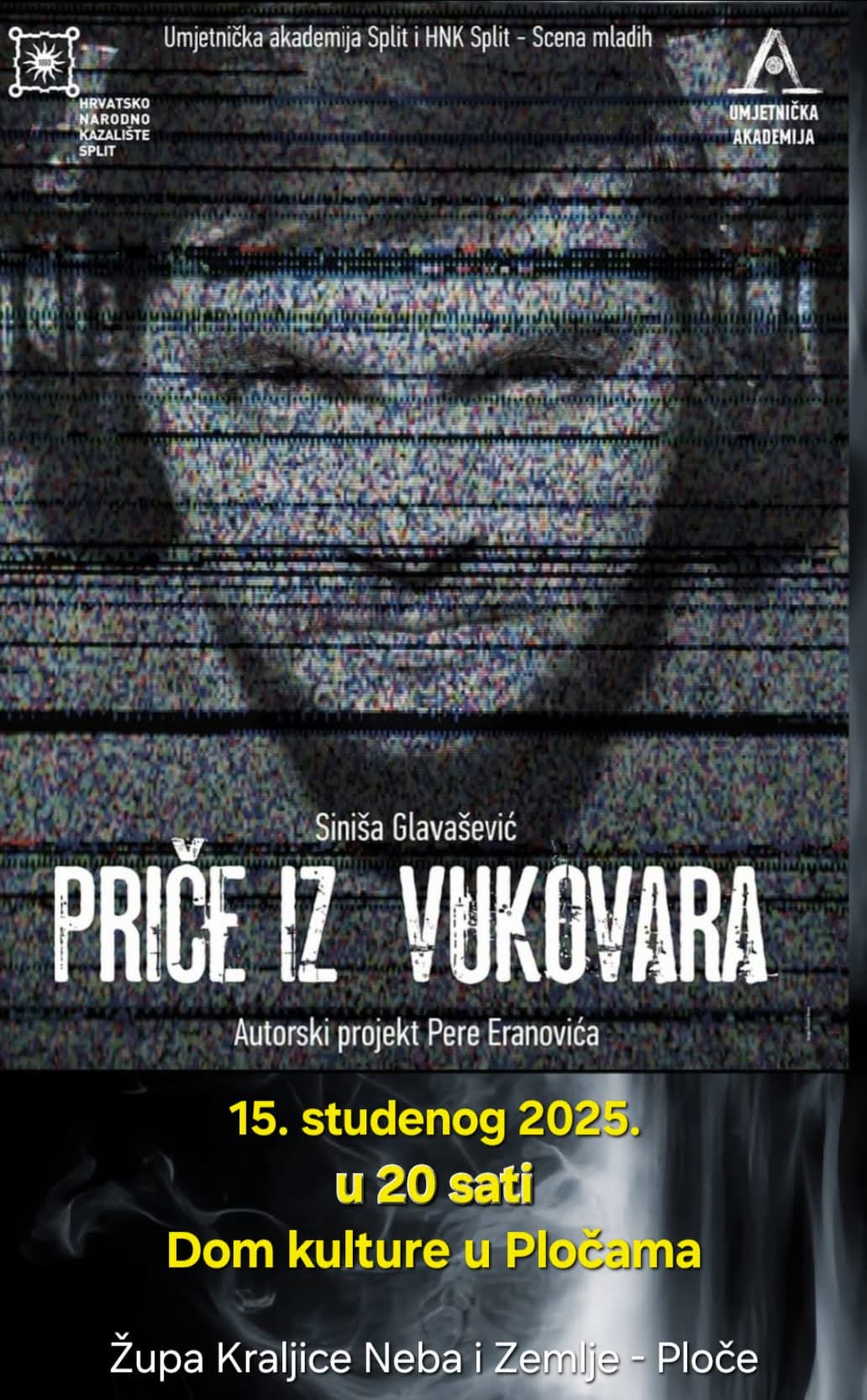 Župa Kraljice Neba i Zemlje Ploče poziva sve građane na monodramu „Priče iz Vukovara“, koja će se održati u subotu, 15. studenoga 2025. godine, u 20 sati u Domu kulture u Pločama.