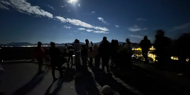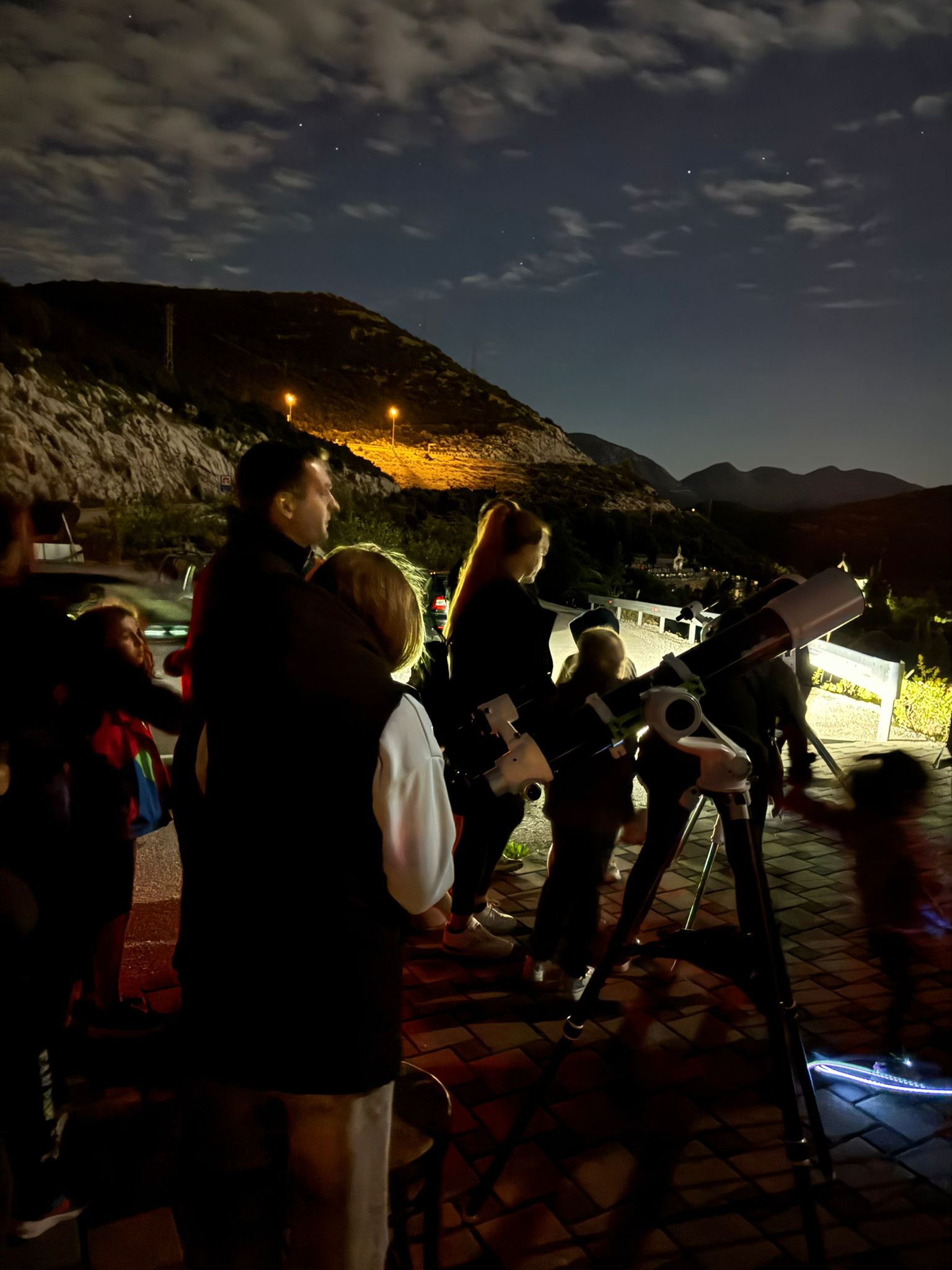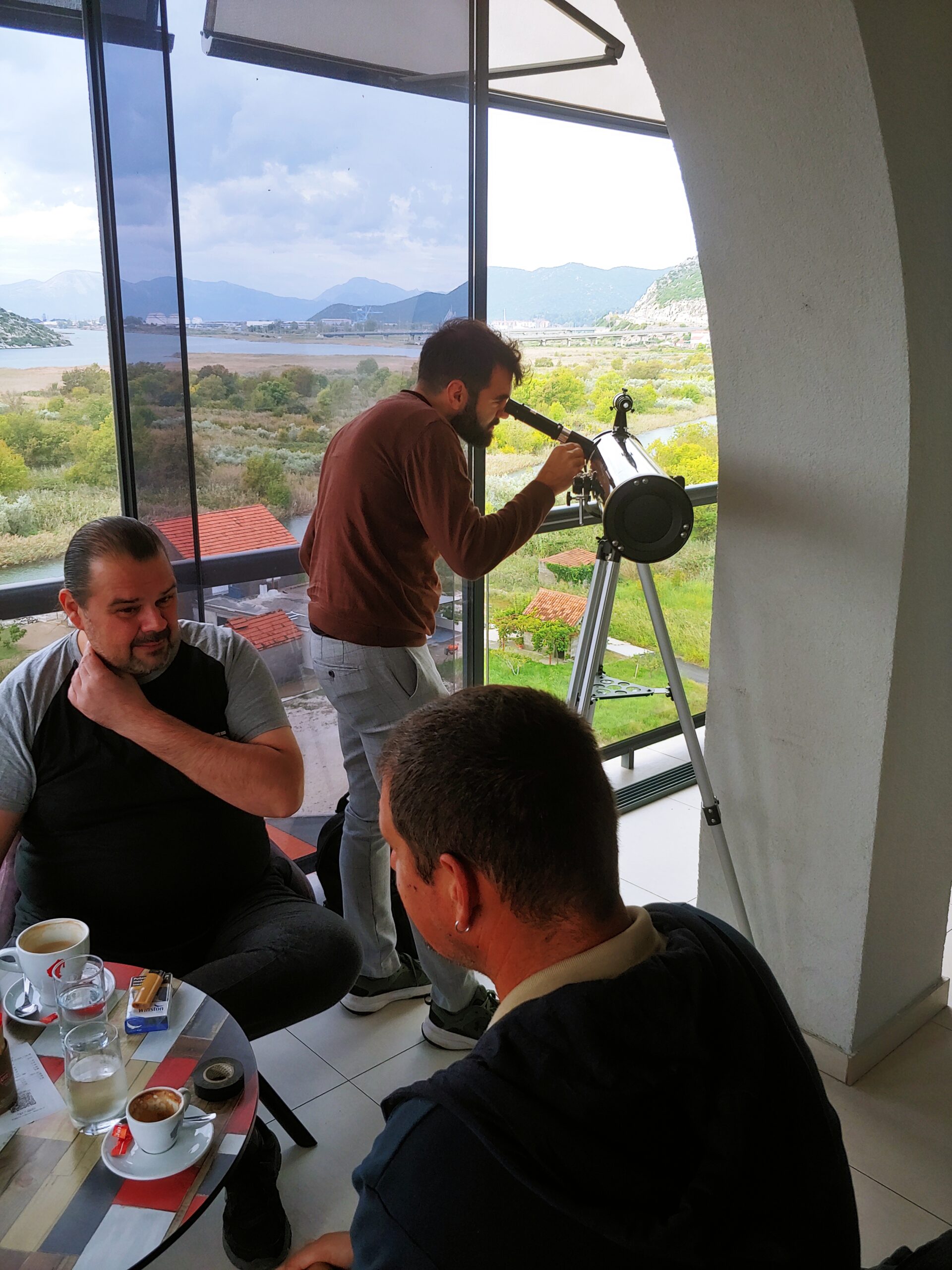 Planirano promatranje Sunca u nedjelju, 5. listopada, nije se moglo održati zbog kišnog vremena, no jedna je obitelj donijela vlastiti teleskop koji im je već dulje vrijeme stajao neiskorišten u ormaru. Članovi Saveza pokazali su im kako ga pravilno sastaviti i koristiti, pa su uz kavicu na terasi kafića vježbali rukovanje teleskopom promatrajući ušće Neretve.