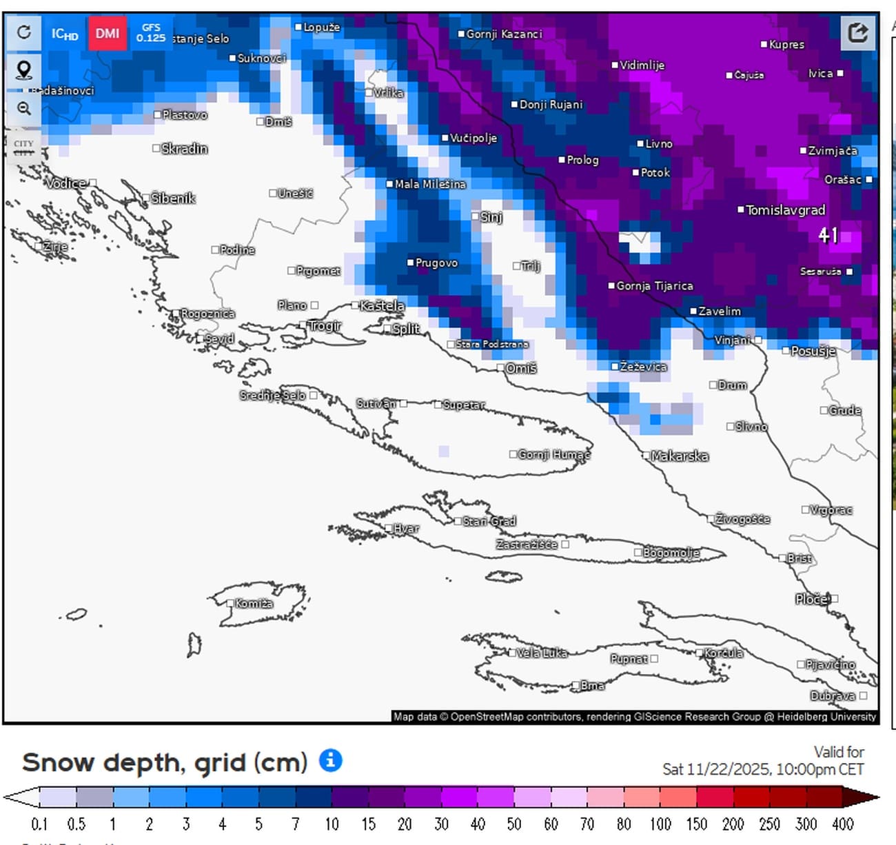 Osim u planinama, snijeg je moguć u Dalmatinskoj zagori, a susnježica se kratkotrajno može pojaviti sve do dijelova obale sjeverne i srednje Dalmacije. Zanimljiv temperaturni obrat dogodit će se u ponedjeljak u čijim će prvim satima temperature biti tek malo iznad nule, a danju će naglo zatopliti uz temperature i preko 15 stupnjeva.