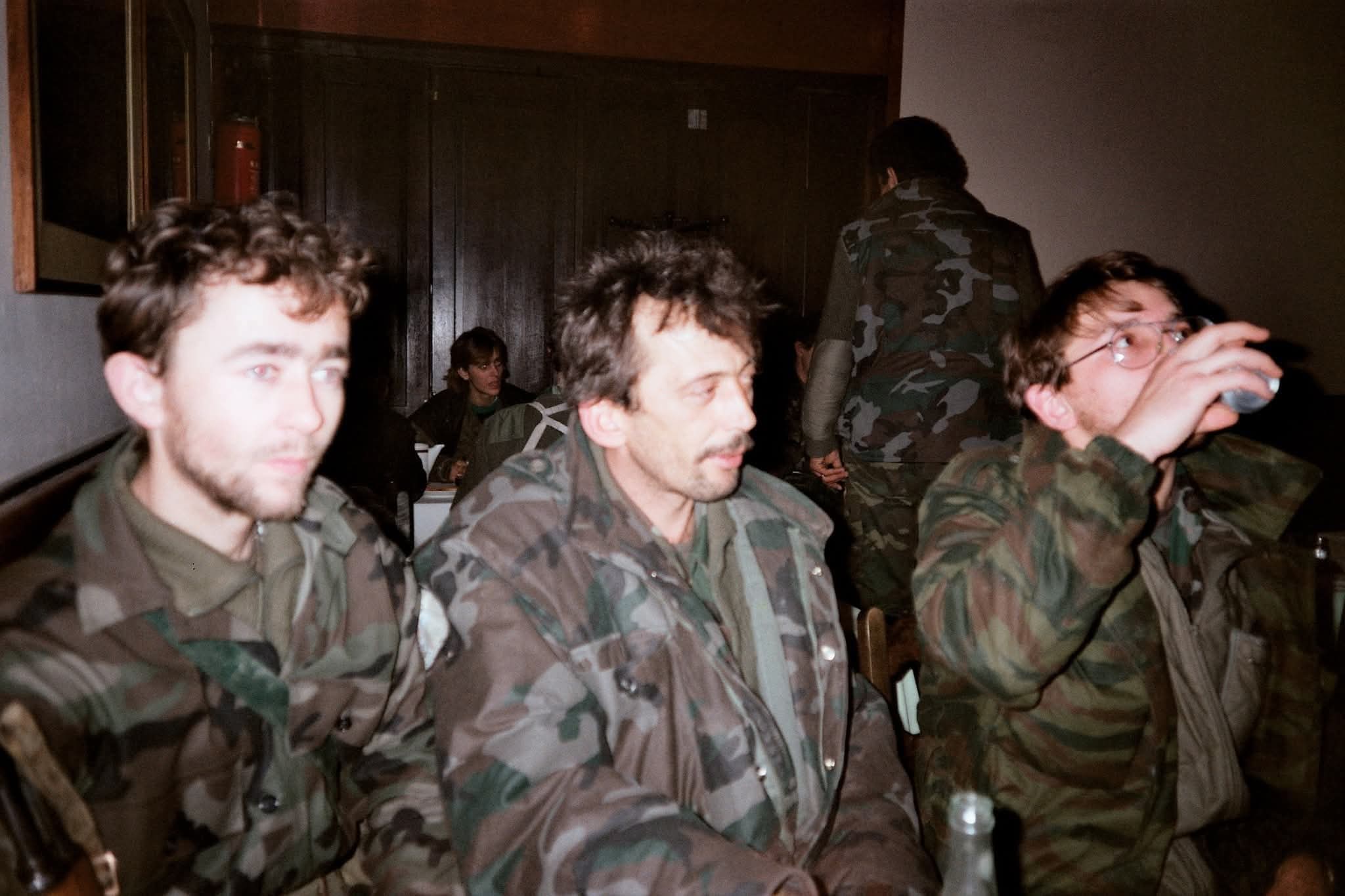 Foto: snimljeno nakon proboja u Vinkovcima, nakon prespavane noći i presvlačenja krvavih i uništenih uniformi. S lijeva: ja, Velimir Kvesić i Petar Gelo, autor fotke: Viktorin Jurić.