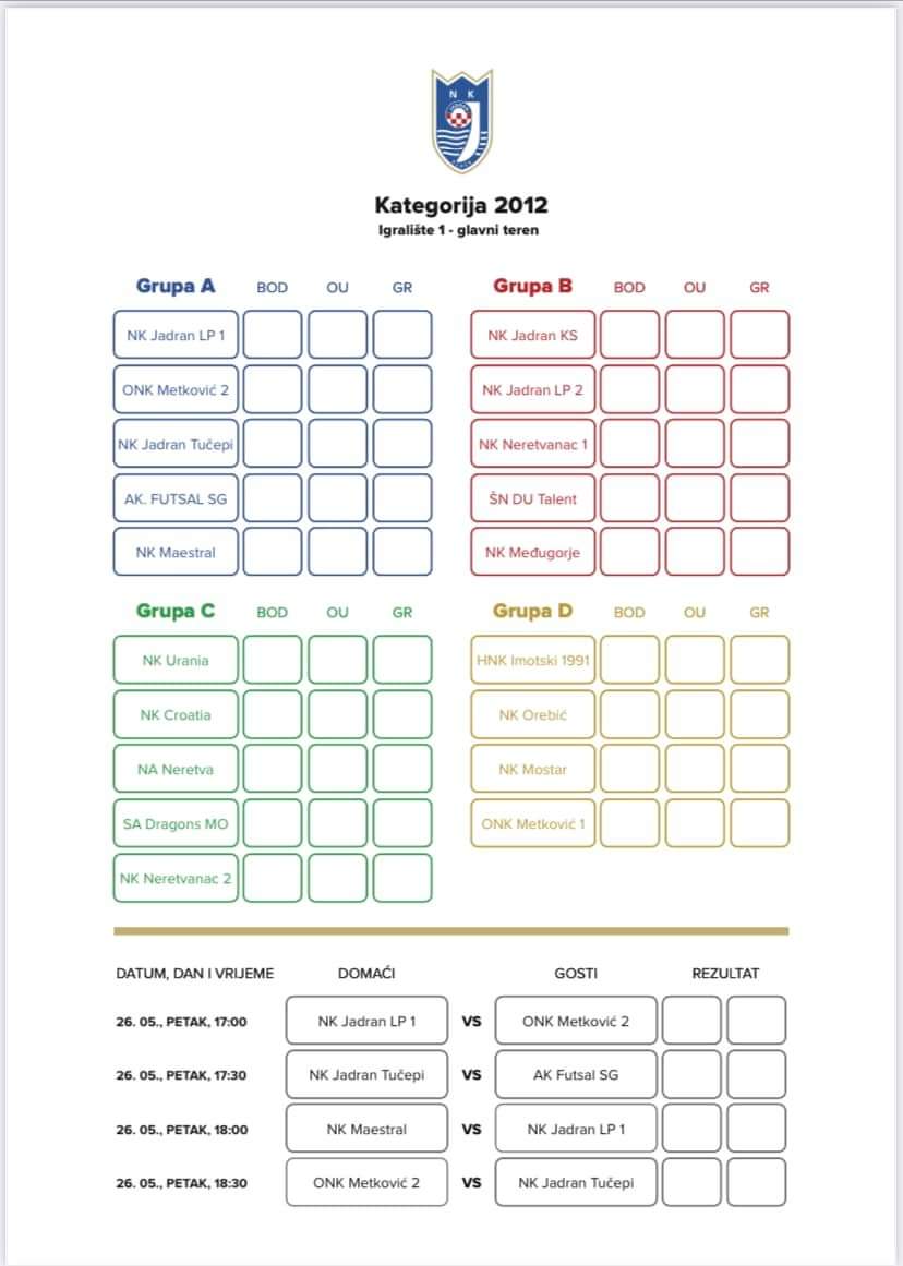 Sutra (petak) s početkom u 17.00 sati otvara se 7. Međunarodni turnir povodom Dana grada Ploča s utakmicom 2012.godišta, između našeg Jadran LP 1 i ONK Metkovića 2.