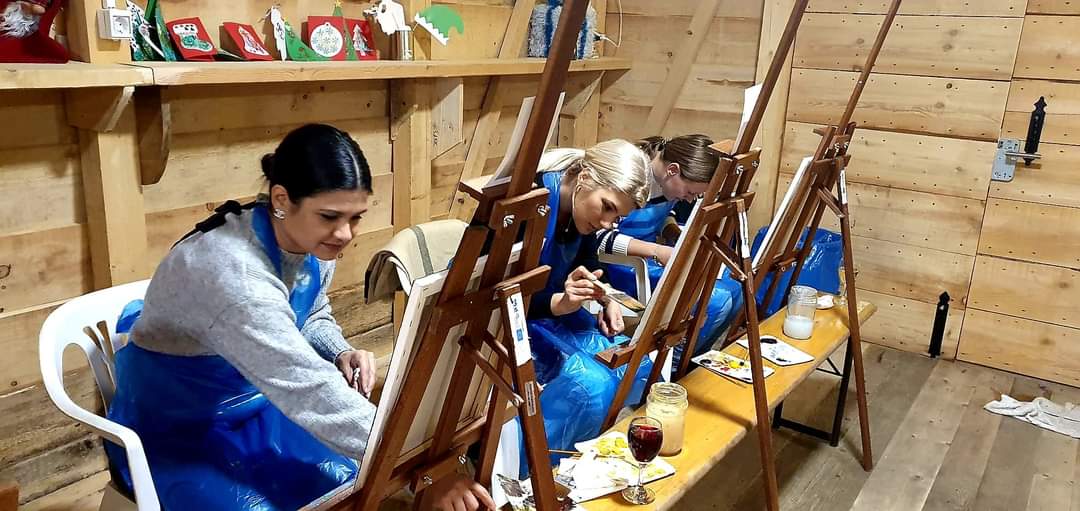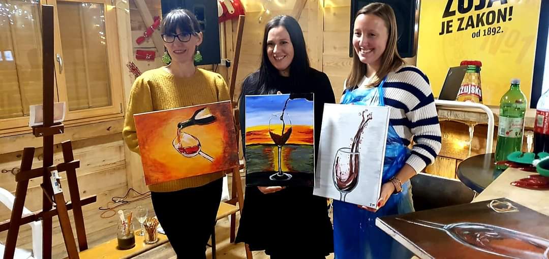 U adventskoj kućici u Gradcu održane su dvije Paint&Christmas Wine radionice.