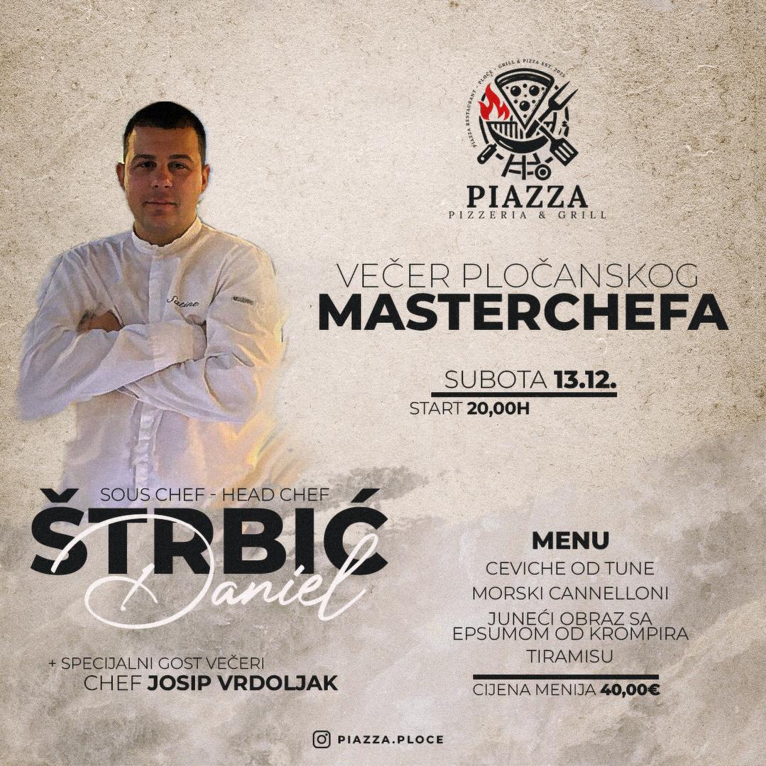 U subotu, 13. prosinca, u pizzeriji i grill baru Piazza u Pločama održat će se posebna gastronomska večer pod nazivom “Večer pločanskog masterchefa”. Početak događaja zakazan je za 20 sati.