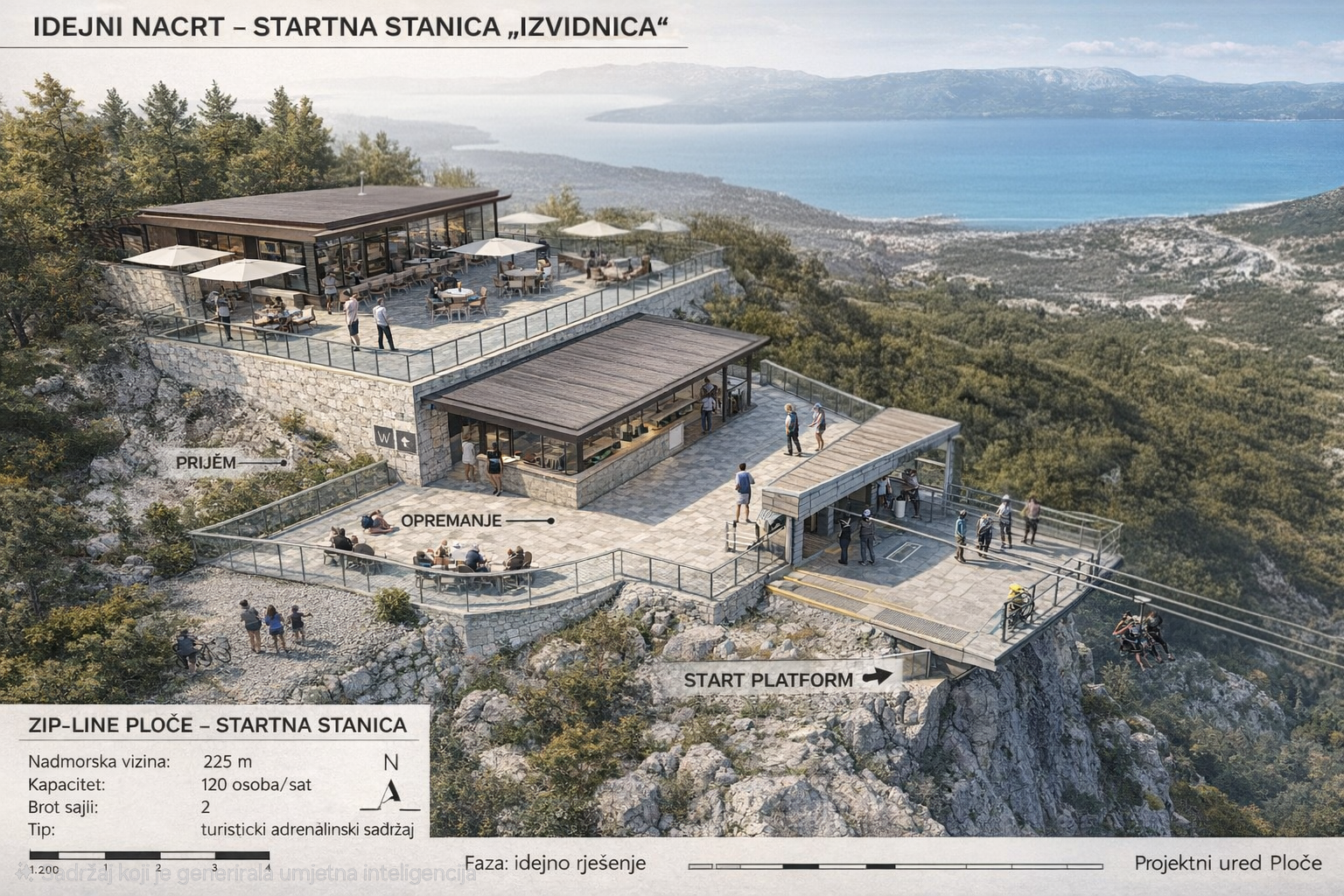 Grad Ploče uskoro bi mogao dobiti jednu od najatraktivnijih adrenalinskih destinacija u Dalmaciji. Prema informacijama koje su se pojavile u javnosti, u pripremi je projekt izgradnje zip-linea koji bi se protezao od Izvidnice pa sve do trajektne luke.