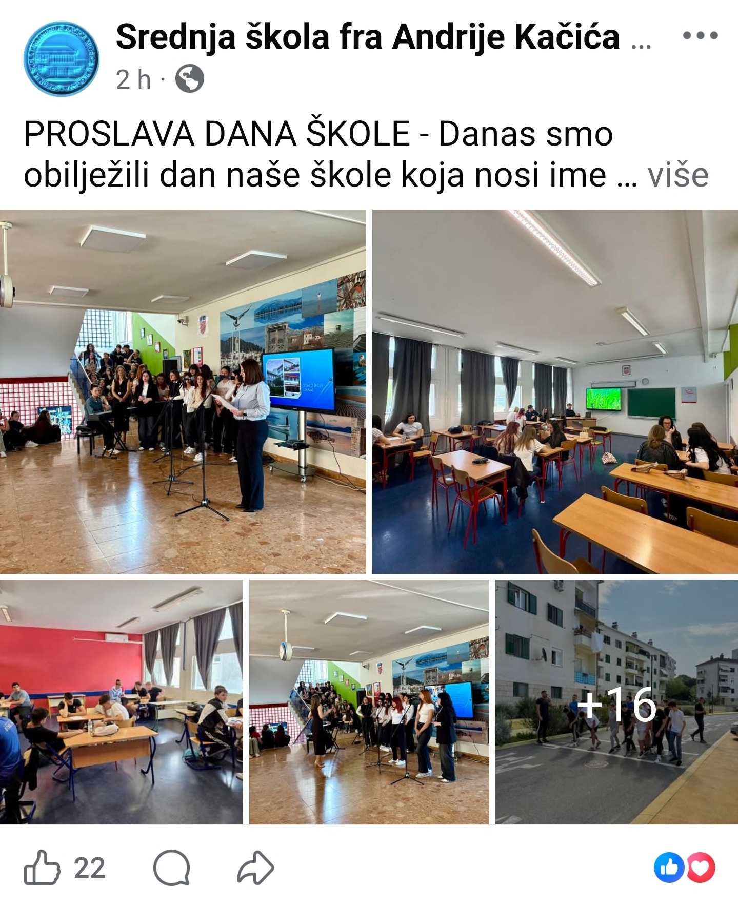 Učenici i djelatnici pločanske srednje škole koja nosi ime po istaknutom hrvatskom prosvjetitelju i piscu fra Andriji Kačiću Miošiću danas su svečano obilježili Dan škole bogatim i sadržajnim programom.