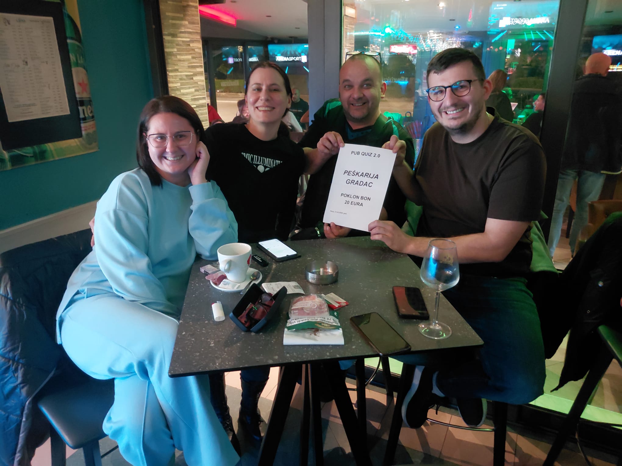 Pločanska ekipa Oluja s juga, koja je ovog utorka nastupila u sastavu David Mihajlović, Matko Musulin, Ivica Popovac i Ivan Žderić, ukupni je pobjednik novog izdanja Pub quiza 2.0.