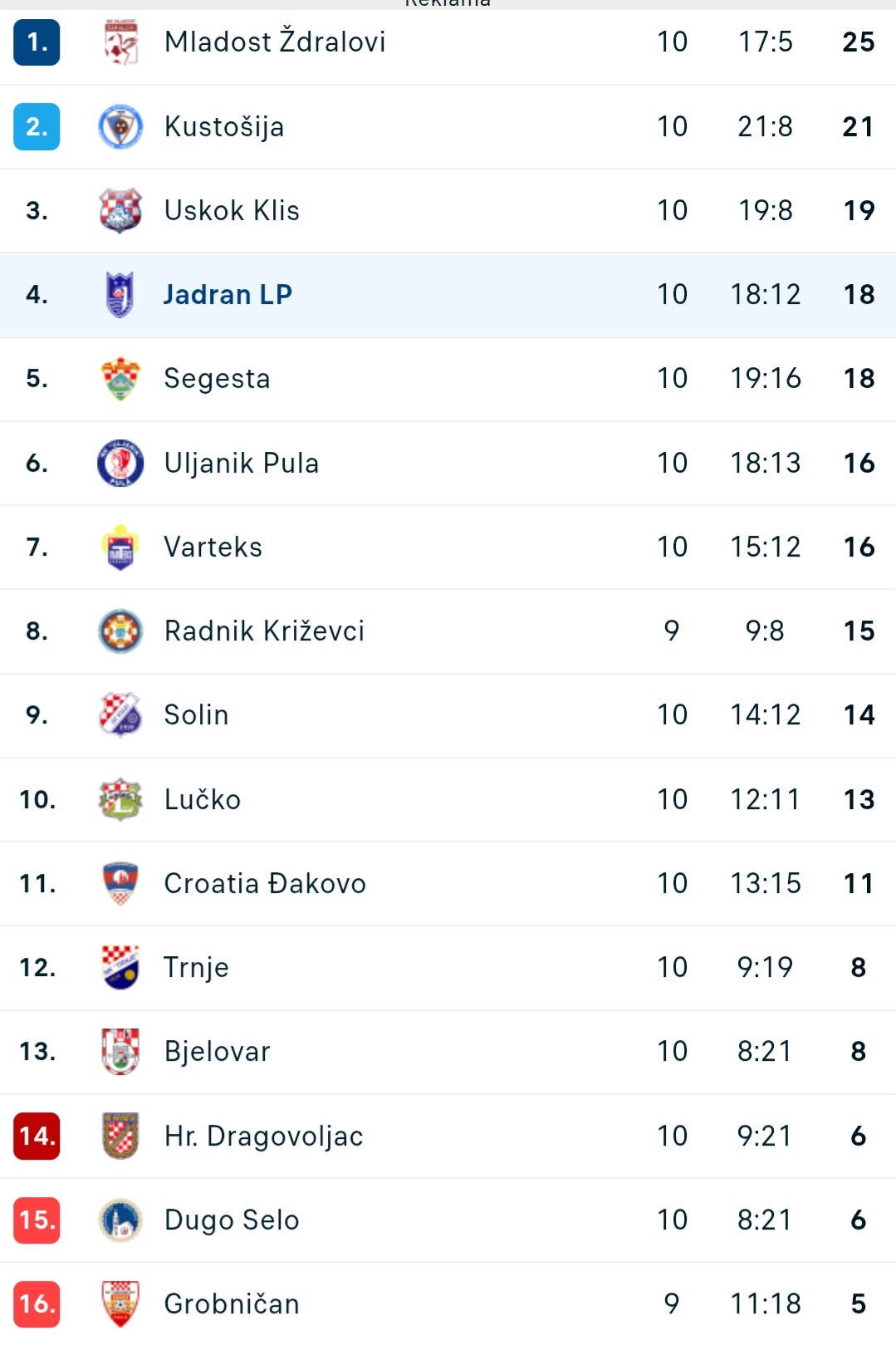 Jadranaši tako nastavljaju uspješan niz u gostima – u pet ovosezonskih nastupa izvan Ploča još uvijek ne znaju za poraz. Uz žal što su bodovi lakše ispadali doma nego na strani, ostaje činjenica da momčad trenera Darka Cvijanovića pet kola prije kraja jesenskog dijela drži visoko četvrto mjesto s 18 osvojenih bodova.