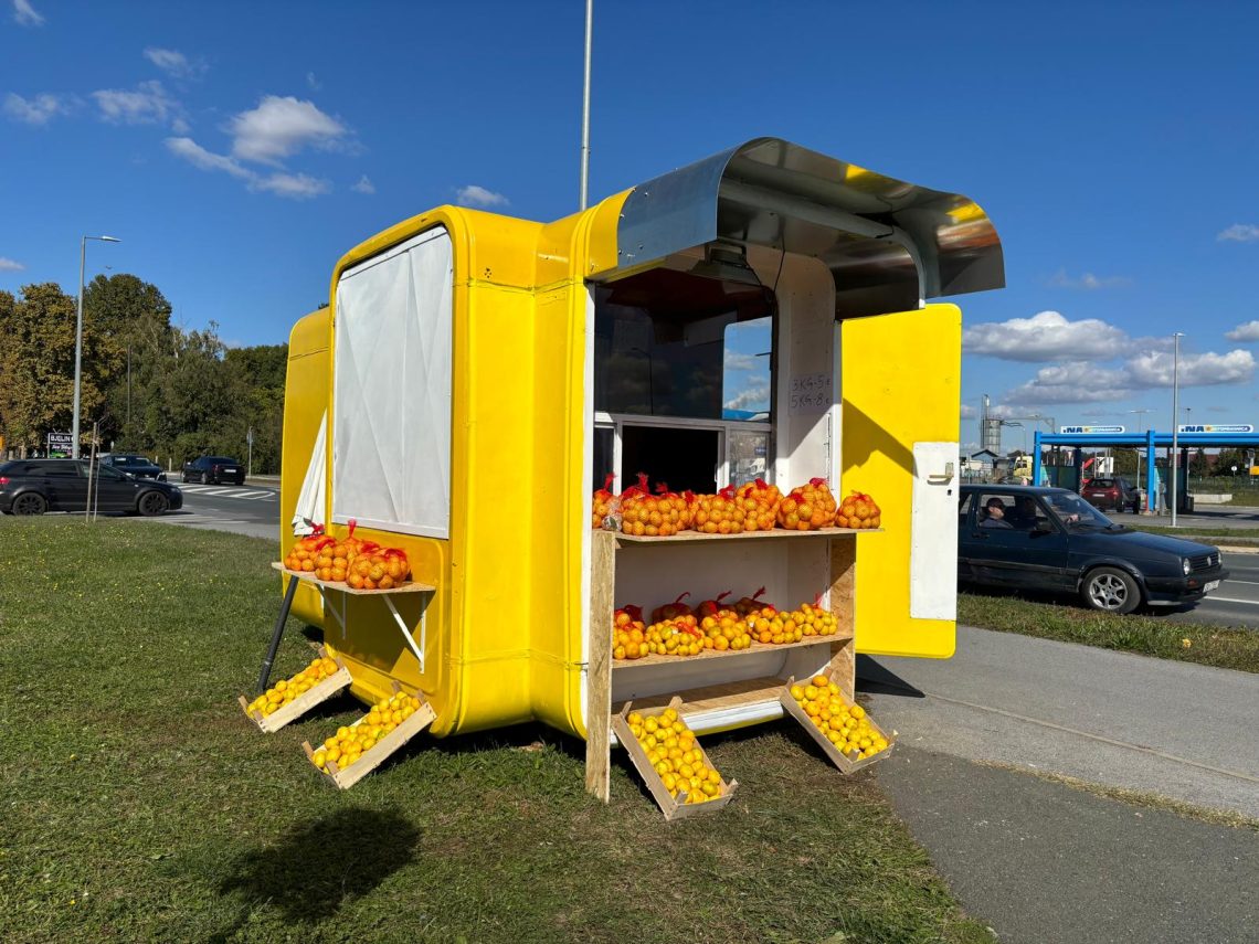 Žuto narančasti kiosk koji se posljednjih dana pojavio na Južnoj obilaznici u Bjelovaru, ispred trgovačkih centara, odmah je privukao pažnju prolaznika. Retro izgledom podsjeća na neka davna vremena, a svojom bojom savršeno se uklopio uz svježinu mandarina koje se u njemu nude.