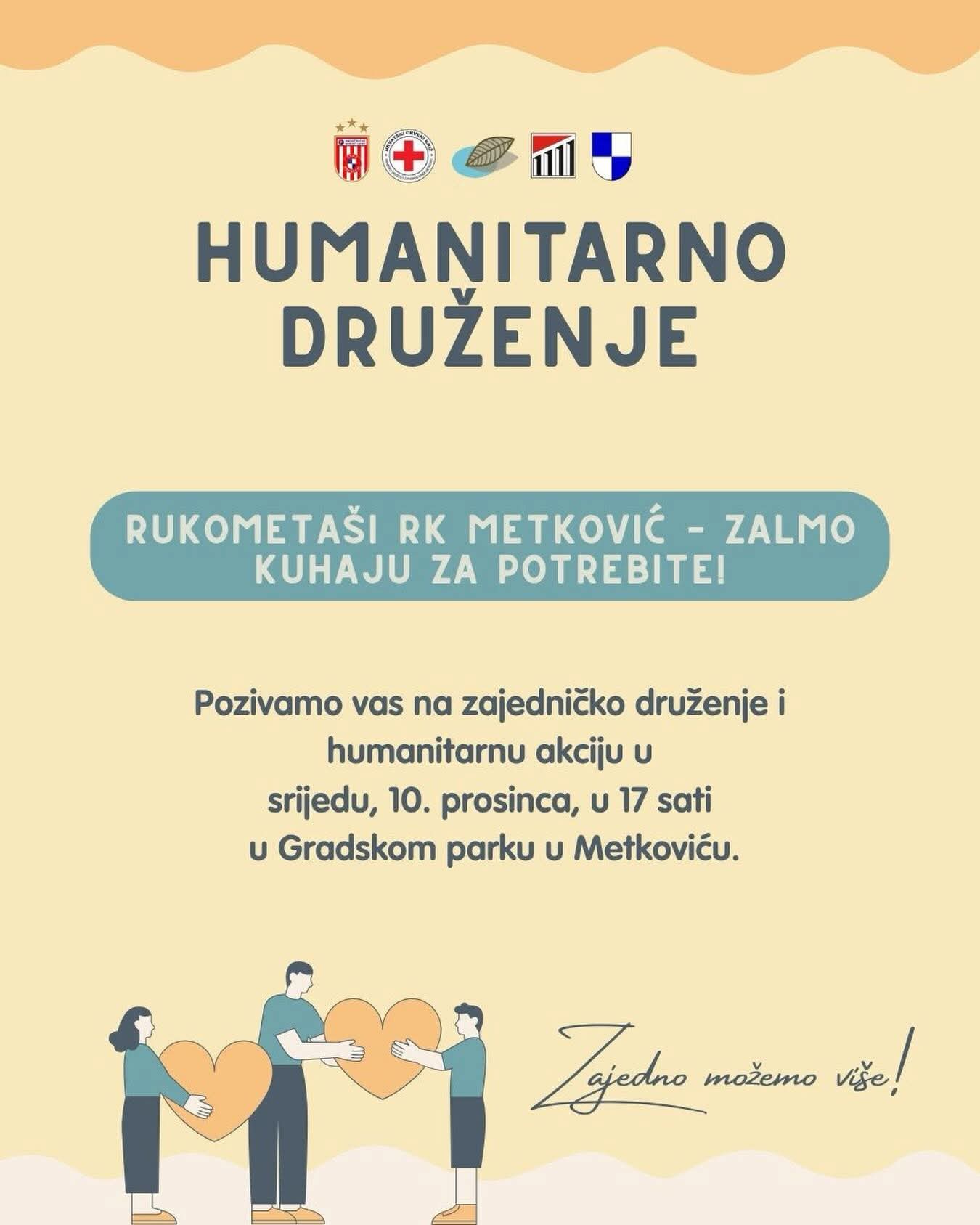 U Gradskom parku u Metkoviću ove će se srijede, 10. prosinca, u 17 sati održati posebno humanitarno druženje na kojem će rukometaši RK Metković – Zalmo zamijeniti sportsku dvoranu kuhačama i velikom posudom. Umjesto rukometnih utakmica, ovoga puta pripremaju večeru namijenjenu osobama kojima je pomoć najpotrebnija, pretvarajući park u toplu blagdansku pozornicu solidarnosti.