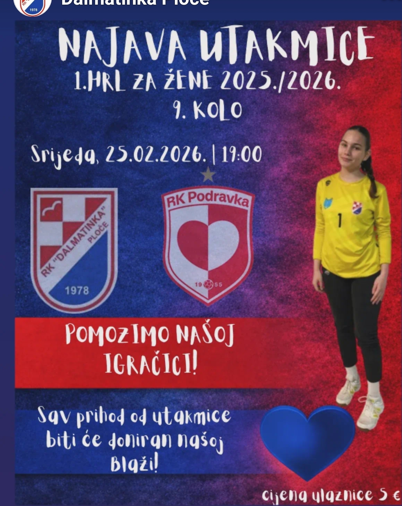 U trenucima kada je najteže, snaga zajednice dolazi do izražaja. Dalmatinka će na terenu dati sve od sebe, ali najveća poruka ove večeri bit će podrška Blaženki – njihovoj suigračici, prijateljici i članici njihove rukometne obitelji.