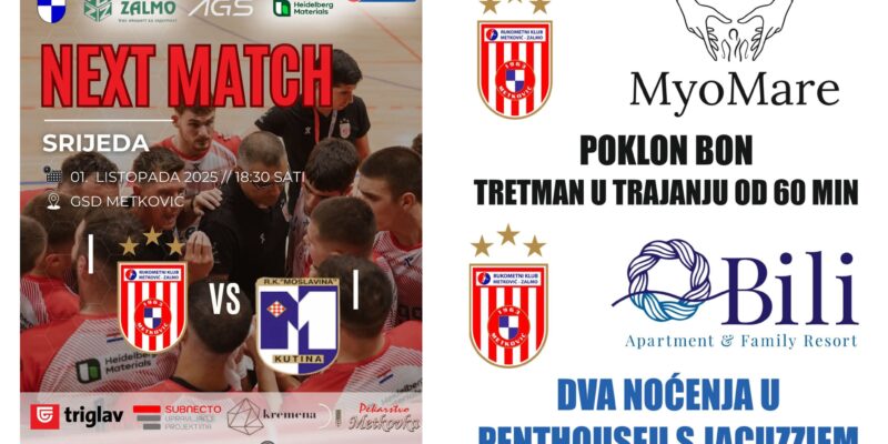 Naime, svi koji dođu podržati Metkovce imat će priliku osvojiti vrijedne nagrade. Villa Bili daruje dva noćenja u luksuznom penthouseu s jacuzzijem, dok MyoMare poklanja poklon bon za tretman u trajanju od 60 minuta. Jedna nagrada bit će dodijeljena putem tombole, a za drugu će biti potrebno i ponešto vještine.