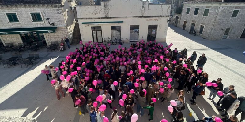Držeći u rukama ružičaste balone, simbol borbe, zajedništva i podrške ženama oboljelima od raka dojke, svi su se zajedno formirali u oblik srca, šaljući snažnu poruku ljubavi i solidarnosti.