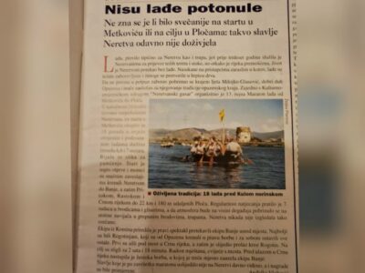 Izdvojeno Kad je Neretva ponovno prodisala: zapis o prvom Maratonu lađa U inbox nam je stigao zanimljiv članak o počecima Maratona lađa na Neretvi, objavljen 1998. godine u časopisu More, čija je autorica Anđelka ... By Klik Ploče5 sati 0