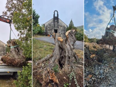 Na Gornjem Orah stiglo višestoljetno deblo masline za oltar crkve Gospe Karmelske
