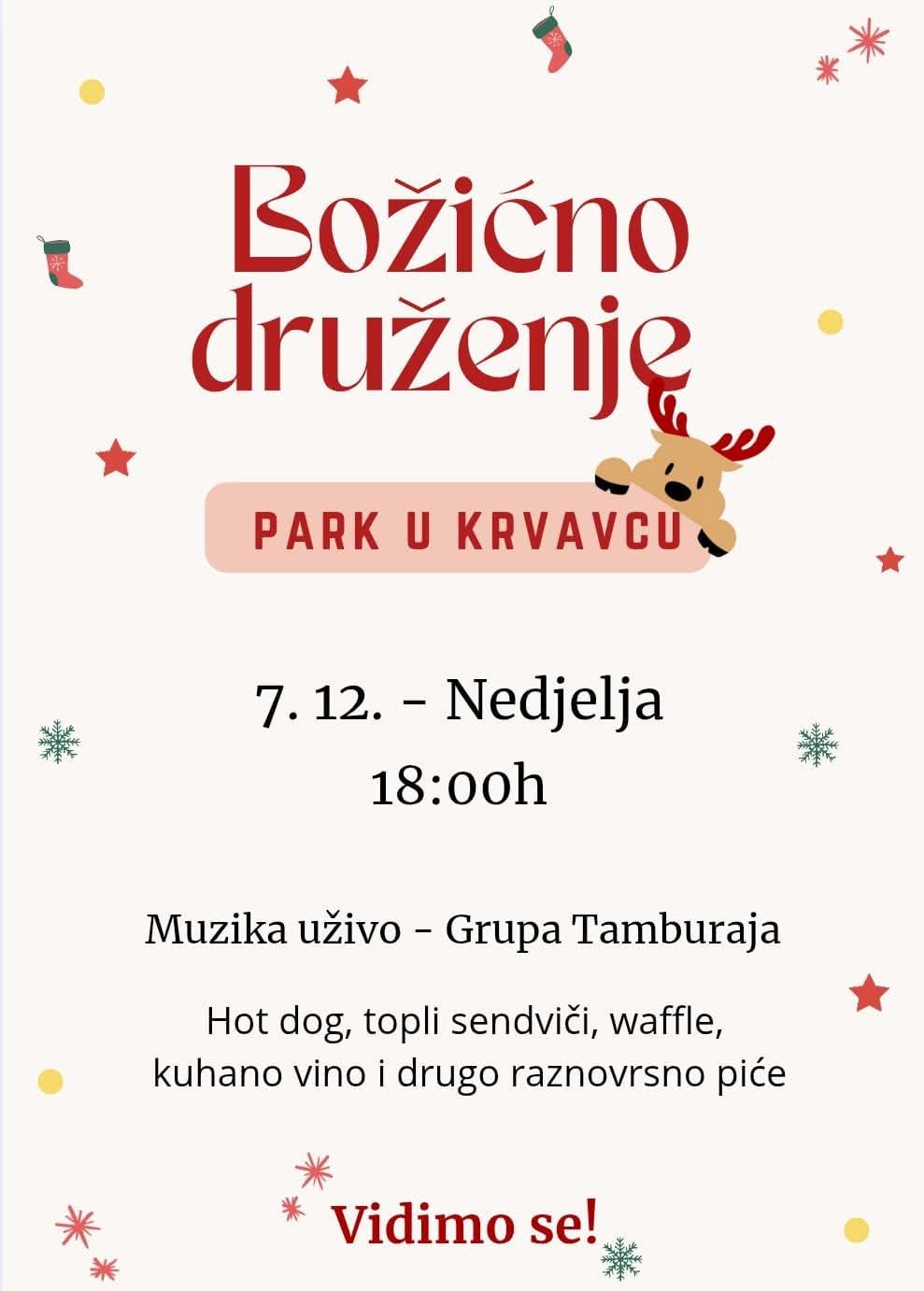 Središnji događaj ovog tjedna bit će božićno druženje u Parku u Krvavcu, koje se održava u nedjelju, 7. prosinca, s početkom u 18 sati. Posjetitelje očekuje bogata ponuda – glazba uživo uz grupu Tamburaja, hot dogovi, topli sendviči, waffle, kuhano vino i razna pića, uz blagdansku atmosferu uoči Božića.