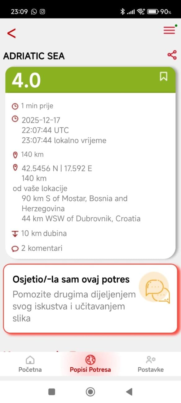 Lapad (Dubrovnik) — “Prvo blagi val, odmah za njim dosta jači. Sve skupa trajalo 4–5 sekundi, vrlo neugodan osjećaj.”