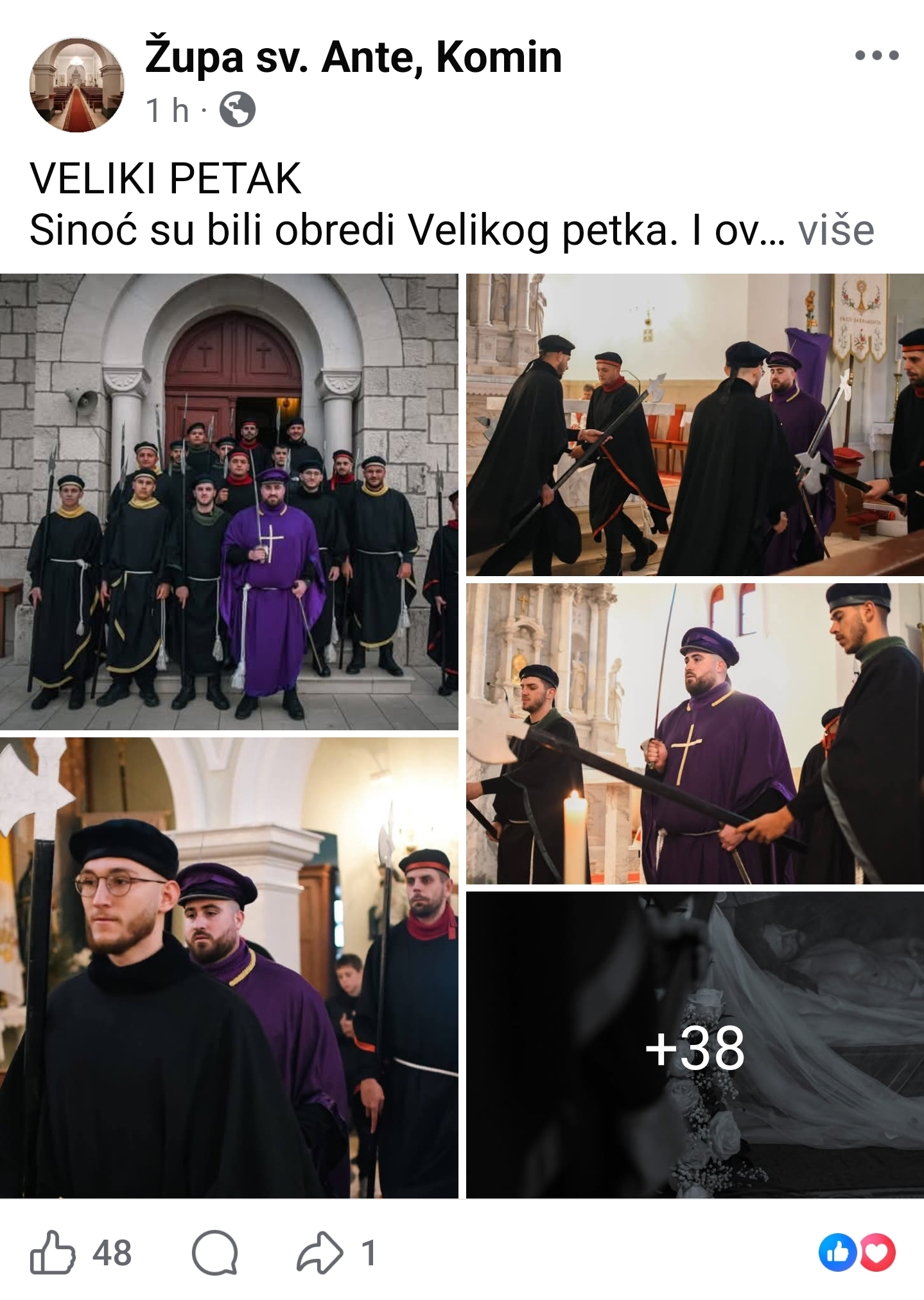 U župi sv. Ante u Kominu sinoć su održani obredi Velikog petka, obilježeni sabranošću i molitvom vjernika. Zbog radova i nemogućnosti prolaska, ove je godine izostala tradicionalna procesija kroz selo, osobito u dijelu oko križa.
