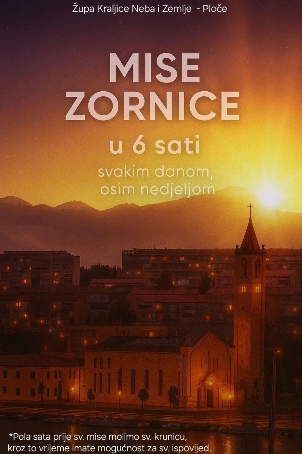U župi Kraljice Neba i Zemlje u Pločama jutros je započelo slavlje zornica, tradicionalnih misnih slavlja tijekom došašća. Svete mise i molitva časoslova održavaju se svakoga dana u 6 sati, osim nedjeljom.